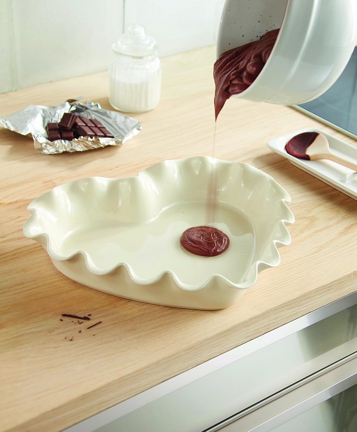 Product Description The new heart dish in the Ruffled collection will accompany all your special occasions. For your friends or family, you can make an attractive cake without spending too much time on the decoration. For 12 generous servings, which can be cut directly in the dish without any risk of scratching the surface. Made from HR ceramic (High Resistance), this dish diffuses the heat evenly and right to the heart of your cakes Set Contains: 3 x 1 ceramic Dish