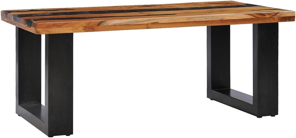 This unique coffee table, made of solid teak wood and lava stone decoration, exudes a rustic charm and is a real eye-catcher. Its rectangular tabletop provides a stable and secure surface on which you can place your drinks, vases, fruit bowls or ornaments. The coffee table can also be used as a side table.The tabletop is fully handmade and the craftsmanship adds to its luxurious appearance. Constructed from extremely durable teak hard wood, this piece of teak table has been seasoned, kiln dried and then fine sanded to give a very smooth appearance. Teak wood is known for its exceptional strength and weather resistance. Teak wood is the perfect choice if you want to purchase a long lasting piece of furniture. The base is made of sturdy mango wood with a black paint finish. Assembly is really easy.Important note: As wood is a natural product, the colors and grain patterns vary from piece to piece, making each of our coffee tables unique and different from the next; the delivery is random.Color: MulticolorTabletop material: Fine sanded teak hard wood with clear finish + lava stoneBase material: Solid mango wood with black finishDimensions: 39.3" x 19.6" x 15.7" (L x W x H)Tabletop thickness: 1.5"Fully handmade