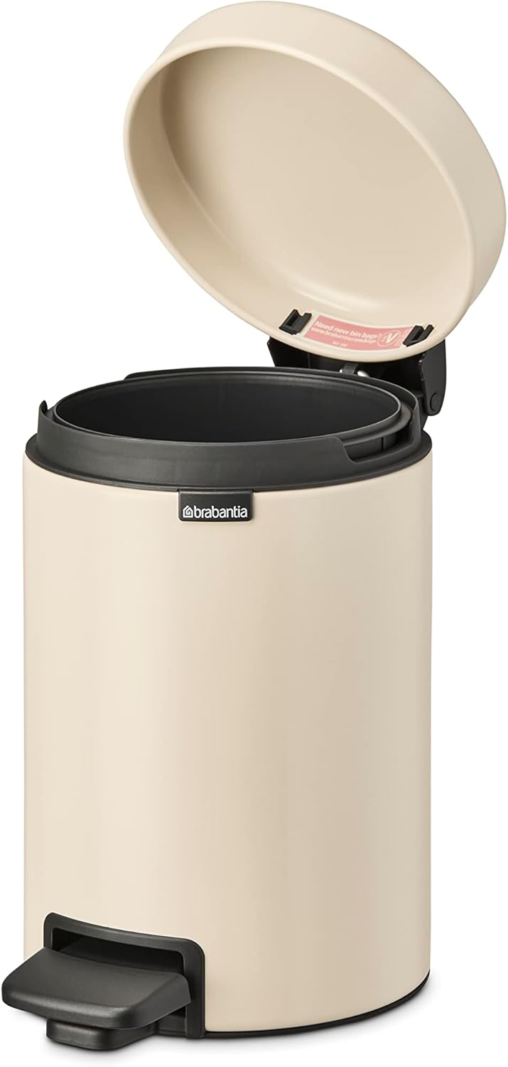 Brabantia’s Step-On Trash Can NewIcon 1.3 Gal is not only stylish and hygienic, but a reliable worker too. Sturdy, and always standing strong because of its non-slip base and anti-tilting block. The lid is odour-proof, closes softly and opens at the lightest tap of your foot. A small touch of timeless design for your bathroom, toilet or nursery - or any other room that could use a great little can!