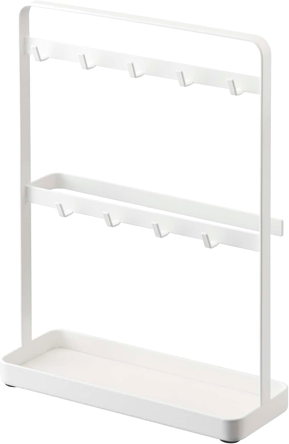 The key to an organized entryway. Add this organizer to your entryway setup to give all your out-the-door essentials a proper home. The modern minimalist frame boosts two tiers of hanging space and a bottom tray for loose items. Now all of your keys, sunnies, and go-to items won't get thrown into a random drawer!