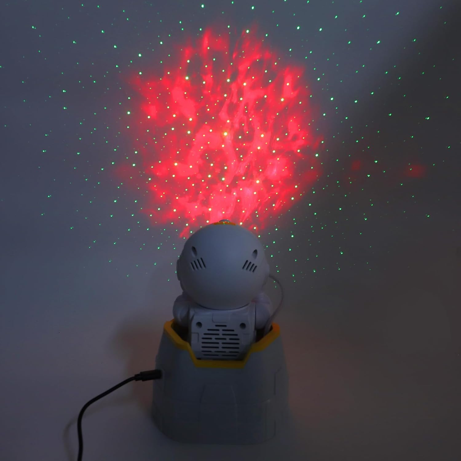 1. [Space Themed Design] Inspired by spaceman leaving the cabin, this modern minimalist projection lamp doubles as futuristic home decor, creating a captivating ambiance in bedroom or living room 2. [LED Projection Technology] Advanced LED projection technology simulates authentic star trails and effects, transforming ceilings into mesmerizing night skies for relaxation or romantic settings 3. [Wireless Control and BT Speaker] Adjust lighting modes, brightness or color via remote controller, while connectivity enables sync music playback for combined audiovisual experiences during sleep or entertainment 4. [Adjustable Angle] Supporting adjustment of projection direction from multiple angles, it can project the well light and shadow effects on ceiling, wall, and bedside table. The thin body saves space and is suitable for bedroom, children room, balcony, etc 5. [Versatile Applications] Functions as both a soothing night light and interactive party accessory, and also a spaceman ornament, enhancing ambiance with customizable visuals for varied social or individual occasions Specification: Item Type: Star Projector Lamp Product Material: ABS, PC Remote Controller Battery: 2 x AAA Battery (not included) How to Use: Follow the instructions manual for use. packing list: 1 Projector 1 x Remote Controller 1 x Base 1 x Supply Cord 1 x User Manual 1 x Sticker