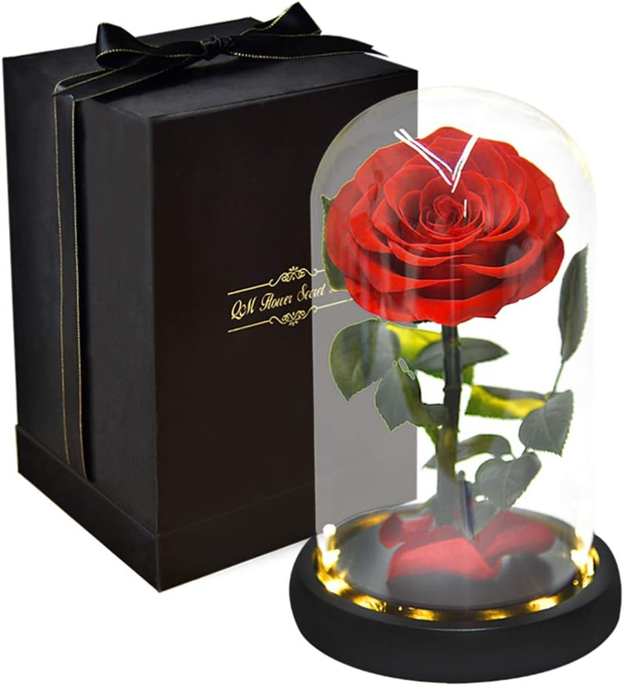 Description Preserved in a romantic glass dome, with light, romantic, dreamy and elegant. It can illuminate to warm and romantic atmosphere for your home or party. This is exactly what you need for Valentine's Day, Christmas, birthday, wedding, or anniversary.Feature- Color: Red.- Material: Synthetic material.- Size: About 12.3x12.3x20cm.- Adoption of premium glass material, the lampshade is clear and .- There is no battery included in our product, and you need to buy three No. 7 batteries to brighten it.- not for to lover and friends, but beautiful decoration in your living room or bedroom or home.- This preserved will be a lovely for marriage proposals, weddings, anniversaries, Valentine's Day, birthday, Mother's Day, Christmas, or any other special occasions.Package Including1 x Preserved