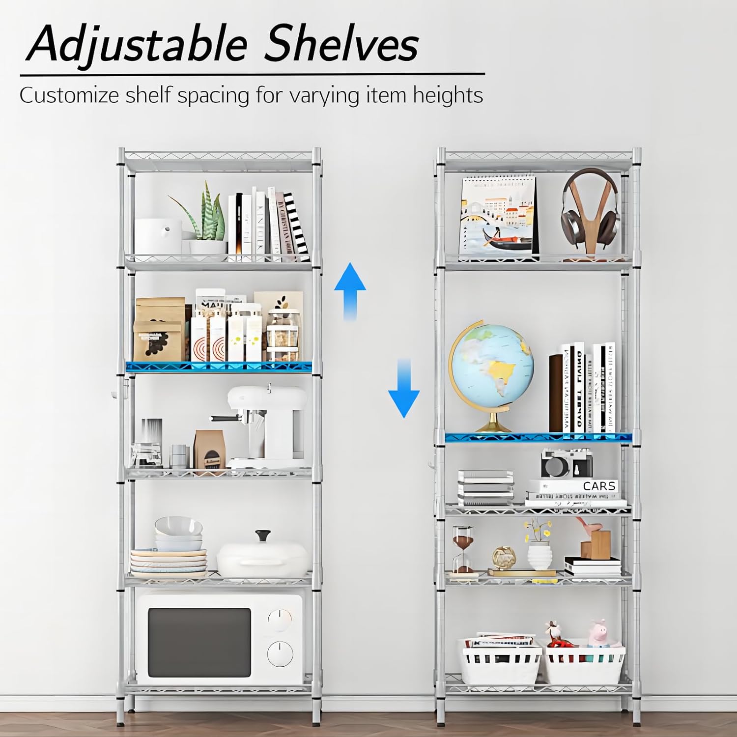 | Included Components | 5 Tier Wire Metal Storage Shelves, Lockable Universal Wheels, Side Hanger Hook |