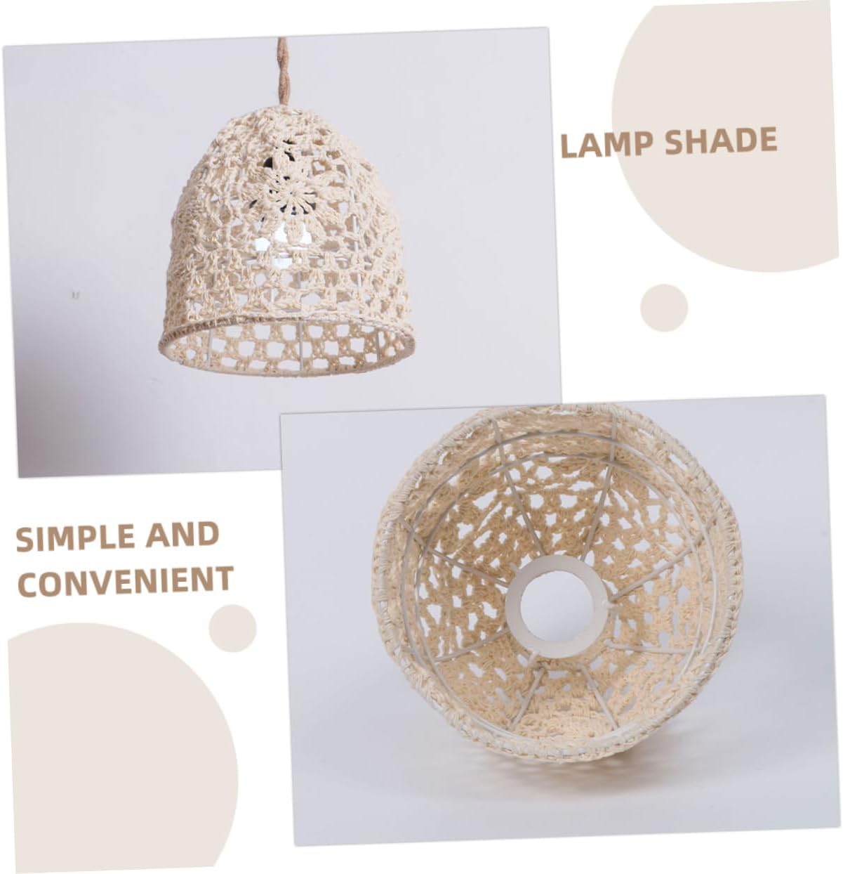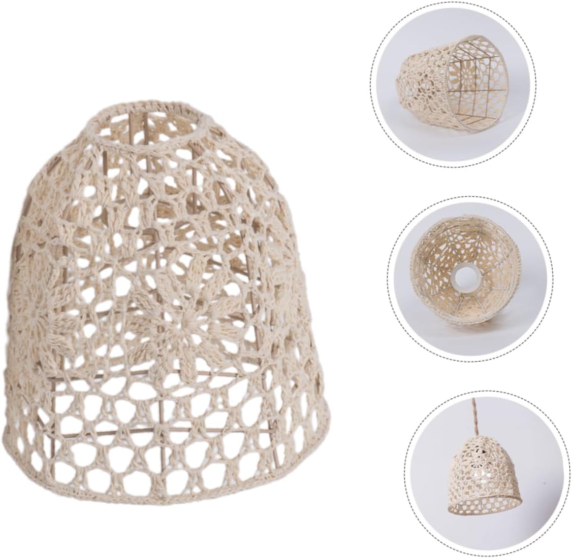 Package Include 1 x lampshade Features -Material:Cotton rope, iron lamp shade protector -Size:24.00X22.00X7.00cm/9.43X8.65X2 desk lamp shade. -Size:20.00X19.00X7.00cm/7.86X7.47X2 table light shade. - Color: Beige bohemian lamp shade -Note: Hole diameter: about 4cm, suitable for E27 lamp socket indoor light cover - This lamp shade can make the light warm and not hurt the eyes, which brings much convenience to your life decorative lamp shade. - Made of stable material, with fine craftsmanship, the lampshade is and very bell lampshade. - Sturdy and material, lightweight and not easy to deform, easy to install. Practical, beautiful hanging lamp shade. - This woven lamp shade can be used as a to your friends, family and co-worker on Housewarming day wicker lamp shade. - Simple and elegant design, this lamp shade is simple but decorative, and well-designed, a great decor country lampshade.Goods DescriptionWoven Lamp Shade workmanship, reasonable structure, professional and practical, can bring you convenience.desk lamp shade The installation is simple and convenient, which is suitable for professional and personal use.country lampshade The lamp shade, adoption of material.table lamp cover It can be used as a lampshade, or home decorations
