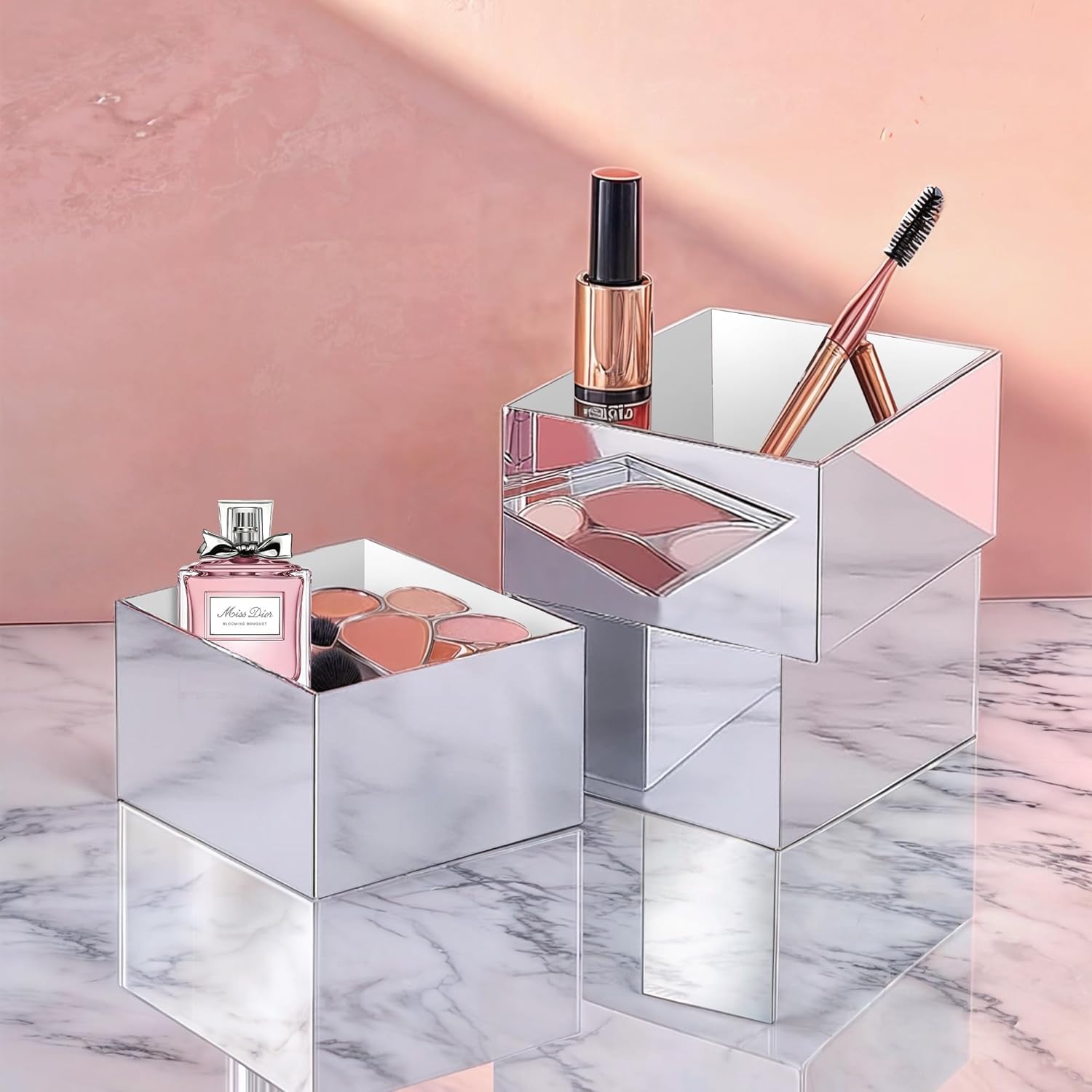 | Special Feature | Dual-functional display stands and storage boxes, mirrored acrylic surface, stackable design |