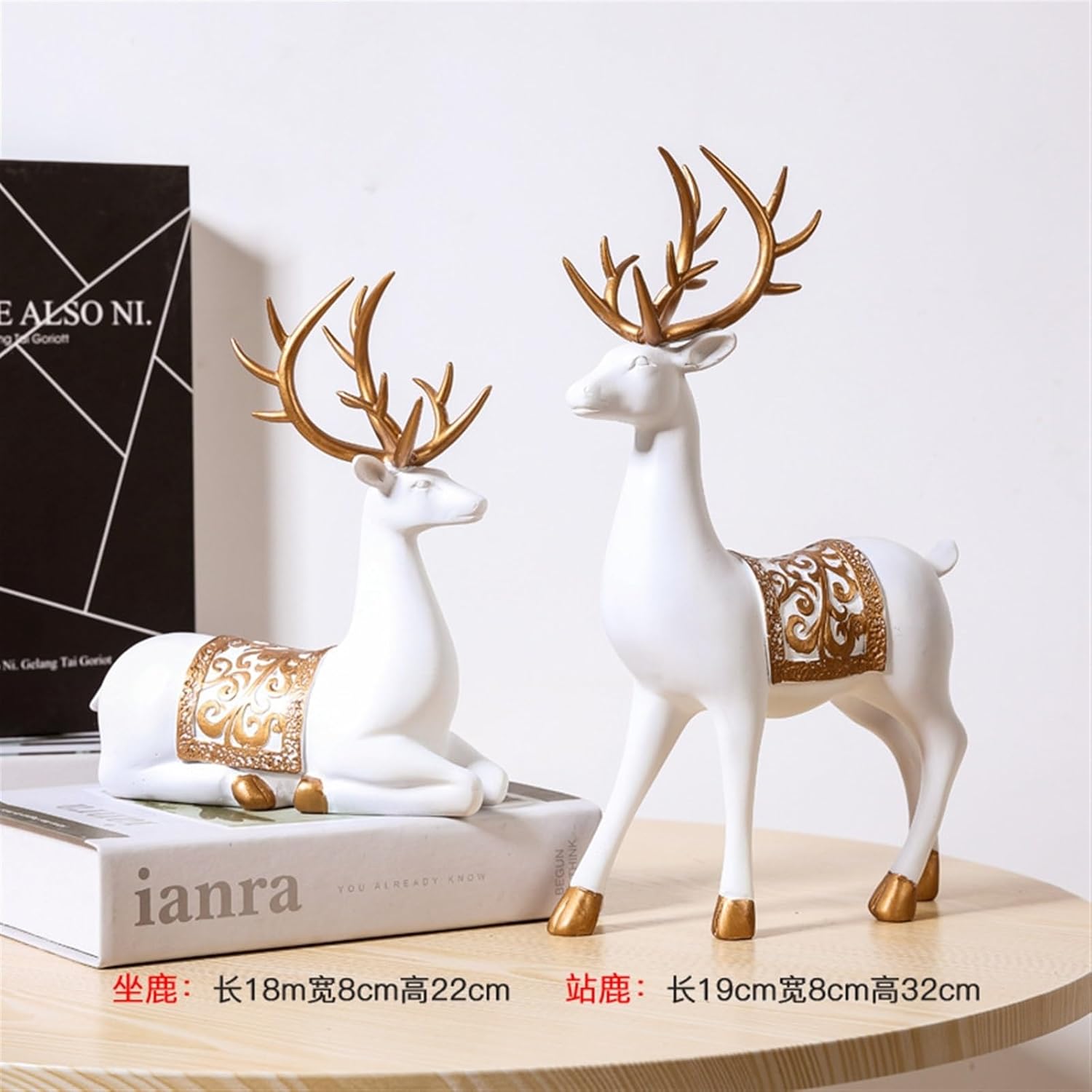 【Material】:Resin【Applicable】:Home Decoration/Soft Decoration Design Matching/Daily Gifts【Specifications】: standing deer: length 12m, width 8cm, height 21 cm, sitting deer: length 10cm, width 8cm, height 15cm【Package】: 1 pair of deer
