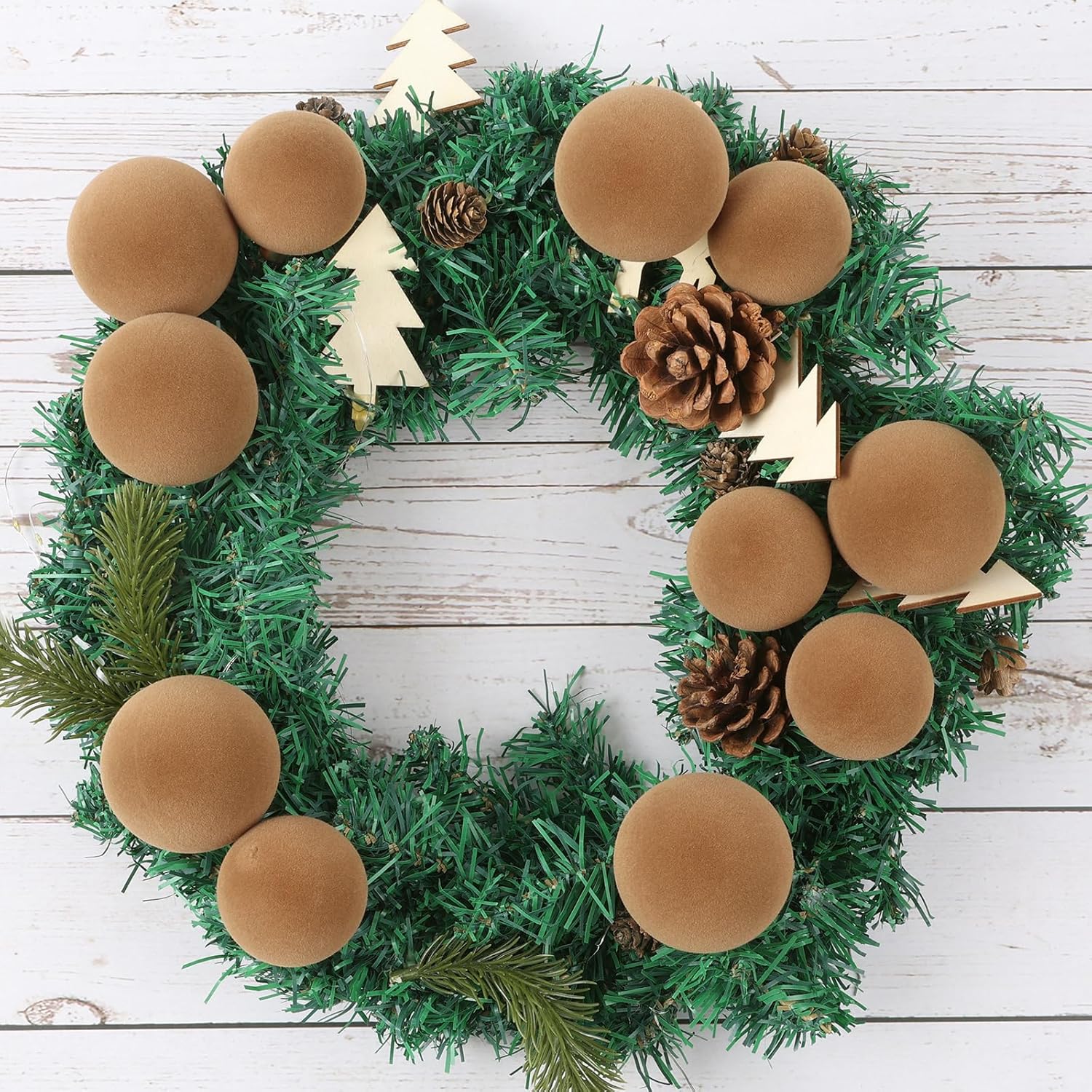Transform your holiday space with our 60-Piece Velvet Ball Ornaments Collection—designed to deliver elegance, versatility, and exceptional value. Crafted from eco-friendly shatterproof plastic and finished with a plush velvet flocking, each ornament resists fading and breakage while adding a cozy texture to your decor. Why Choose This Set? Effortless Styling: The thoughtfully curated sizes (4cm to 15cm) create visual depth on trees, mantels, or stair garlands. Family & Pet Safe: Non-toxic materials and shatterproof construction ensure worry-free decorating around children and pets. Sustainable Choice: Reusable for years, reducing single-use waste—aligning with the 73% of consumers prioritizing eco-friendly decorations Perfect For: Homeowners, event planners, and small businesses seeking premium yet affordable decor. Pair with cedar garlands9 or LED lights8 for a magazine-worthy display! This velvet balls Features: This balls can be widely used for Christmas party Holiday wall hanging, front door, wedding decor Material:velvet package included:60 pieces Christmas Velvet Balls Color: as shown in the pictures Size: 6inch/15cm