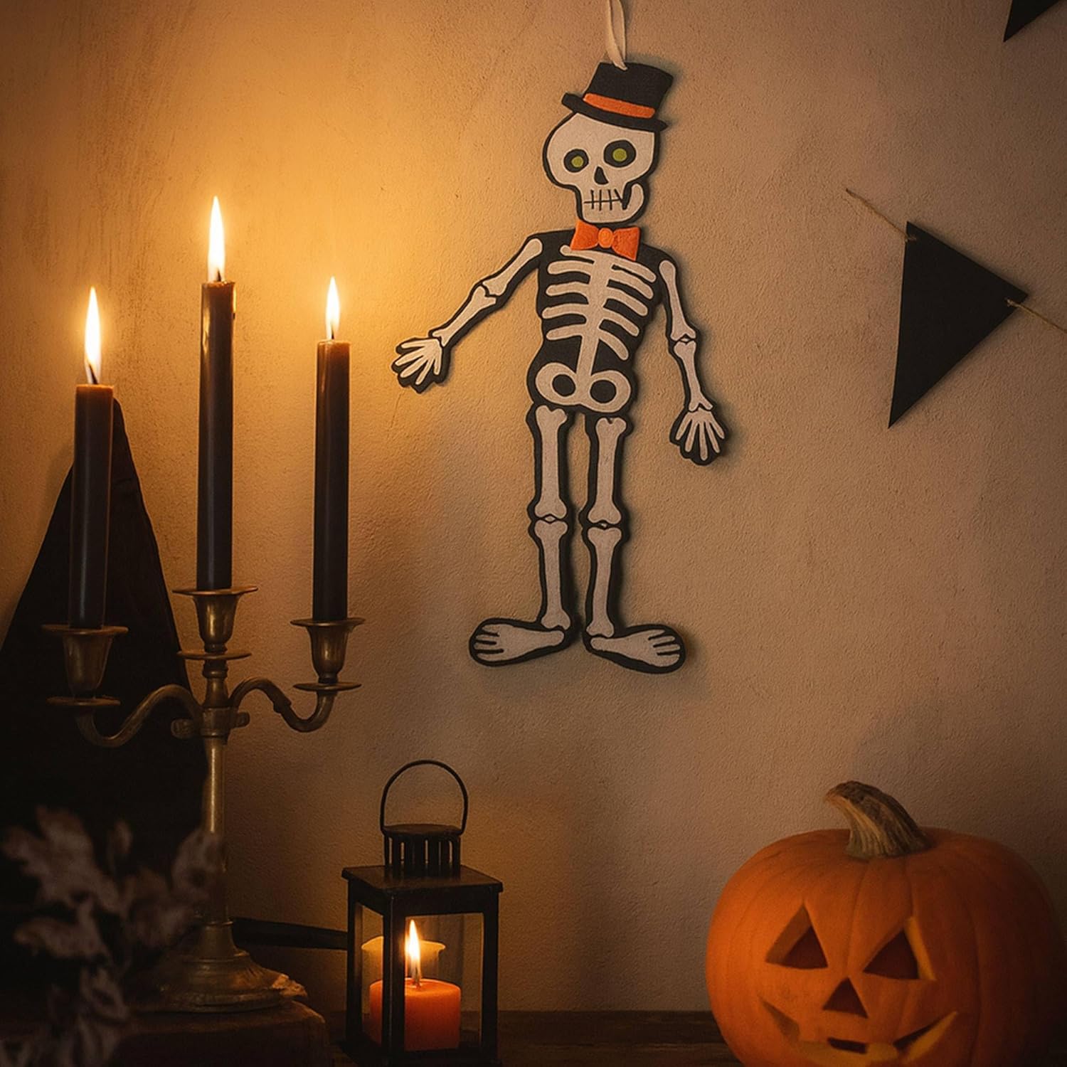 Decorative Hanging Skeleton 12.5 x 50 cm with Bow Tie for Halloween