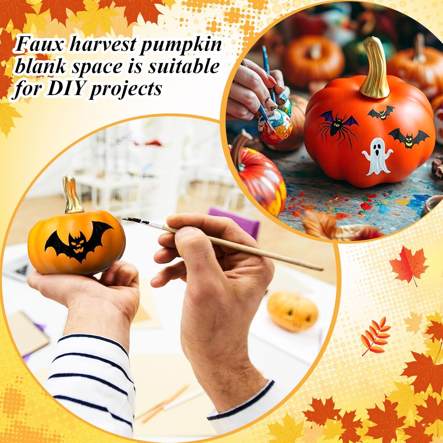 • Quality Material: our paintable pumpkins for crafts are made of quality foam; the fall artificial pumpkins boast a lifelike appearance while being remarkably lightweight; The gold plastic stem enhances their authentic look, making them easy to use in various decorating projects; They are durable, easy to store and can be displayed year after year