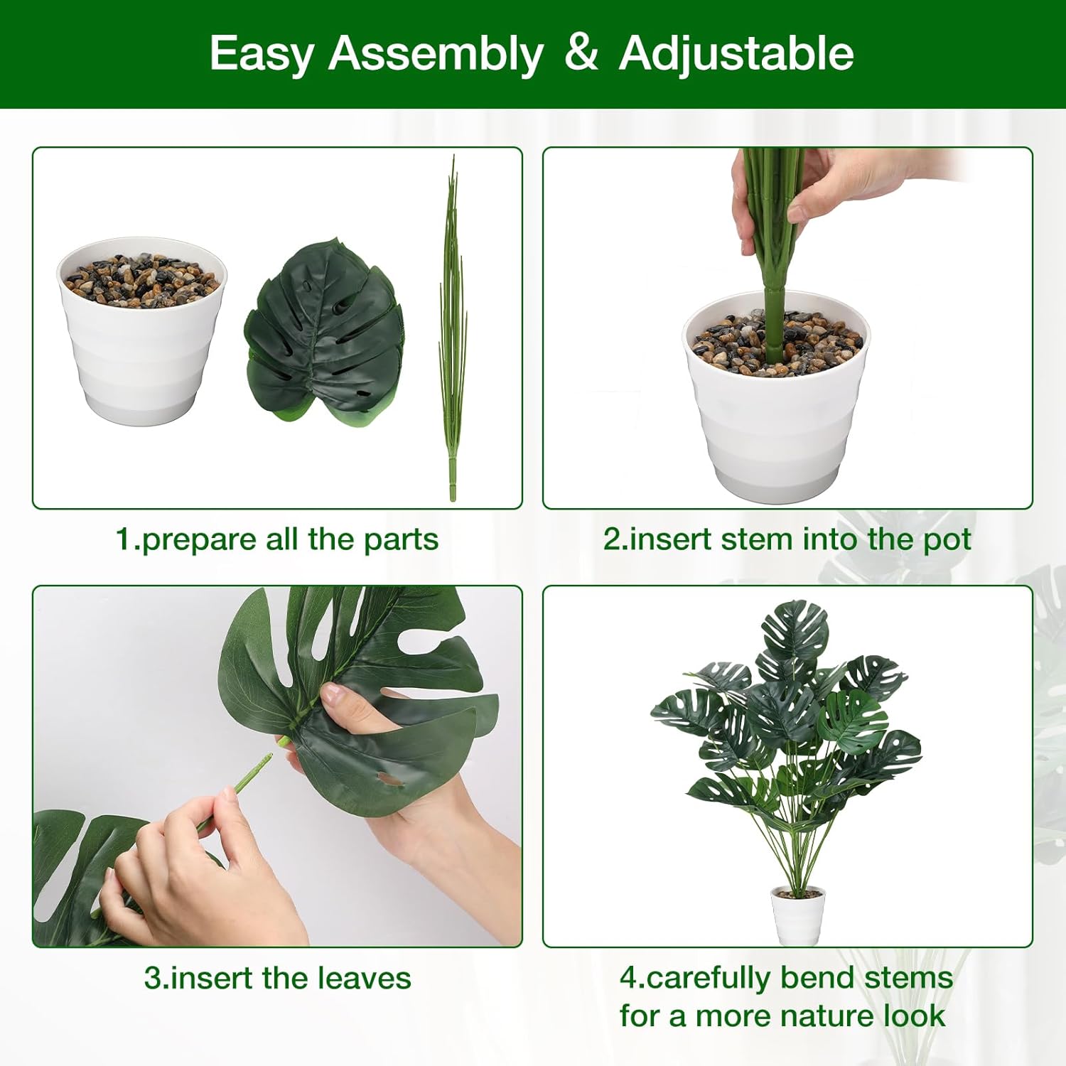 | Included Components | White plastic pots, Artificial monstera deliciosa potted plants |