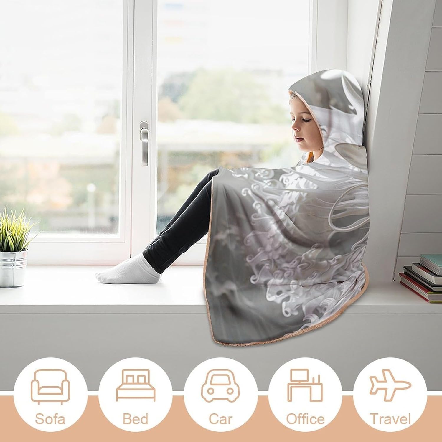 Wrap yourself in luxury with our Wearable Hooded Blanket!PREMIUM MATERIAL:Crafted from premium arctic velvet, this reversible blanket combines ultra-softness with durability. The smooth, non-shedding surface and flesh-pink interior feel gentle against your skin, while the breathable fabric ensures comfort without overheating.PRACTICAL BLANKET:Designed for convenience, the attached hood stays secure without dragging, making it easy to move around while staying cozy. Whether you're reading on the sofa, camping outdoors, gaming with friends, or napping, this wearable cloak blankets you in warmth wherever you go.DURABLE & SKIN-FRIENDLY:Meticulously stitched with vibrant colors, this White Dragon Style blanket retains softness and shape after washing. No bleach required. Designed for everyday use.EXQUISITE WORKMANSHIP:Delicate stitching, high-definition printing and dyeing, clear patterns, bright colors, no fading, many choices, it is warm and beautiful when worn on the body.WARM GIFT:This super soft cloak blanket is specially designed for intimate love, loved ones, friends gift for Christmas Thanksgiving gifts, beautiful and soft blanket is to bring them warmth, joy and love feeling.EASY MAINTENANCE:Machine washable (cold water) for hassle-free cleaning, it retains its vibrant color and plush texture wash after wash. Embrace versatility and comfort.Size:40 inches x 50 inches / 100cm x 130cm50 inches x 60 inches / 130cm x 150cm60 inches x 80 inches / 150cm x 200cmI wish you a pleasant shopping experience!