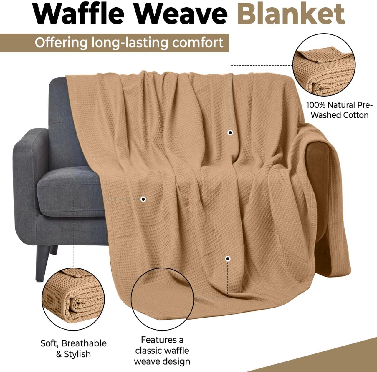 QUBA LINEN Cozy, warm, super soft and welcoming premium quality All-Season breathable thermal blanket will add welcoming warmth and luxury to your room. The perfect blanket is light in weight and ideal to use all year.The blanket is crafted from ultra-soft 100-percent cotton fabric with honeycomb waffle weave design around.The waffle weave makes it possible to use all year round; this blanket will keep you cool through the summer, and will keep you warm through the long winter months. The breathable blanket is exceptional in its make and is crafted to ensure you get premium quality sleep. Available in a variety of trendy colors to coordinate beautifully with your living decor