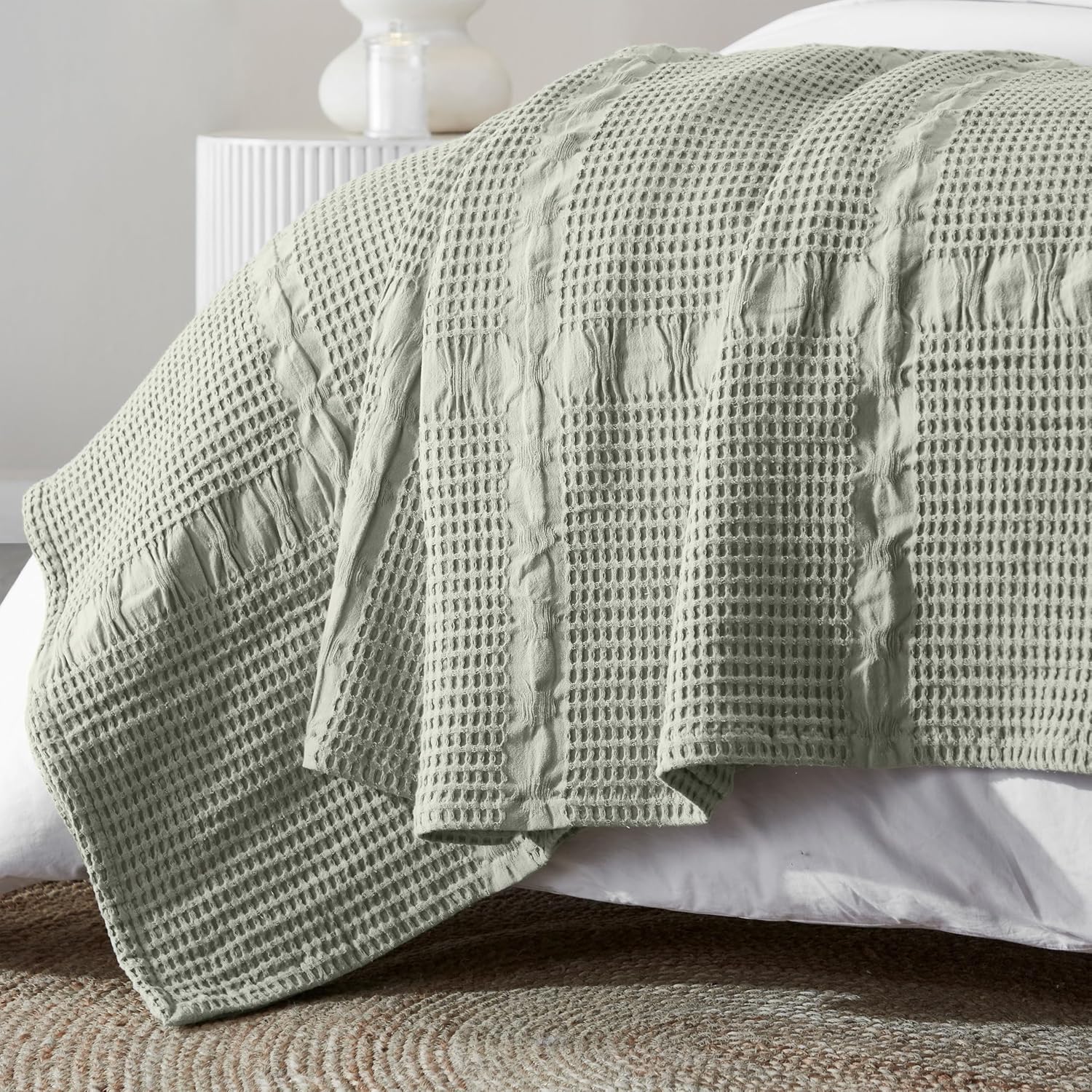 Transform your living space with the exquisite Superior Mai Waffle Cotton Blanket, expertly crafted with a geometric waffle design and a sturdy self-binding hem for unparalleled style and durability. Crafted from 100% cotton, this blanket offers year-round comfort with its medium weight and breathable texture. Available in Light Blue, Platinum, Sage, and White, this blanket complements any decor, making it ideal for bedrooms, living rooms, or as a cozy throw.