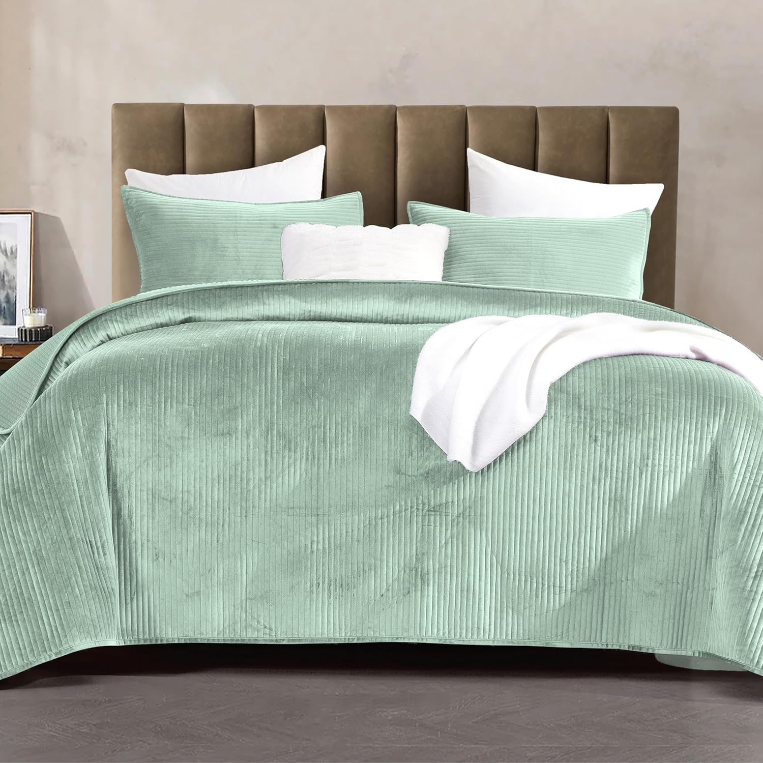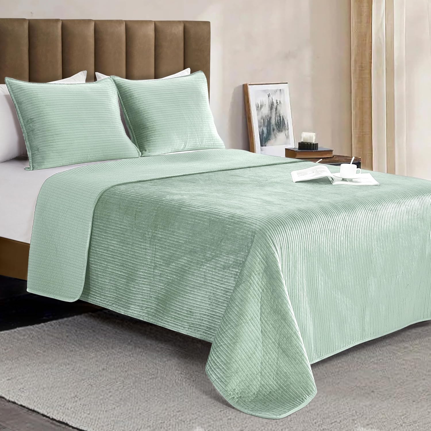 Experience unparalleled comfort and style with our Elegant Comfort 3-Piece Luxury Velvet Quilt Set. This bedding set is designed for those who appreciate quality and want to add a touch of elegance to their bedroom. Made from ultra-soft and cozy Mink Velvet, this set is not just about looks but also about providing a warm and comfortable sleeping experience. Mink Velvet is known for its superior softness and warmth, making it a popular choice for bedding. It has a plush texture that feels great against the skin, providing a comfortable and cozy sleeping environment. The material is also breathable, helping to regulate your body temperature so you don't overheat during the night. Additionally, mink velvet is durable and long-lasting, ensuring that your quilt set will stand the test of time. Our Luxury Corduroy Stripe Velvet Quilt Set is the perfect addition to any bedroom. Whether you're looking to update your bedding or searching for the perfect gift, this set offers the perfect combination of style, comfort, and durability. The ultra-soft mink velvet provides a cozy and warm sleeping experience, while the premium stitching ensures that your quilt will last for years to come. With its non-pilling fabric and easy-care instructions, this set is designed to provide long-lasting comfort and style. Choose from a variety of colors to find the perfect match for your bedroom decor, and enjoy the luxury and comfort of our premium quilt set.
