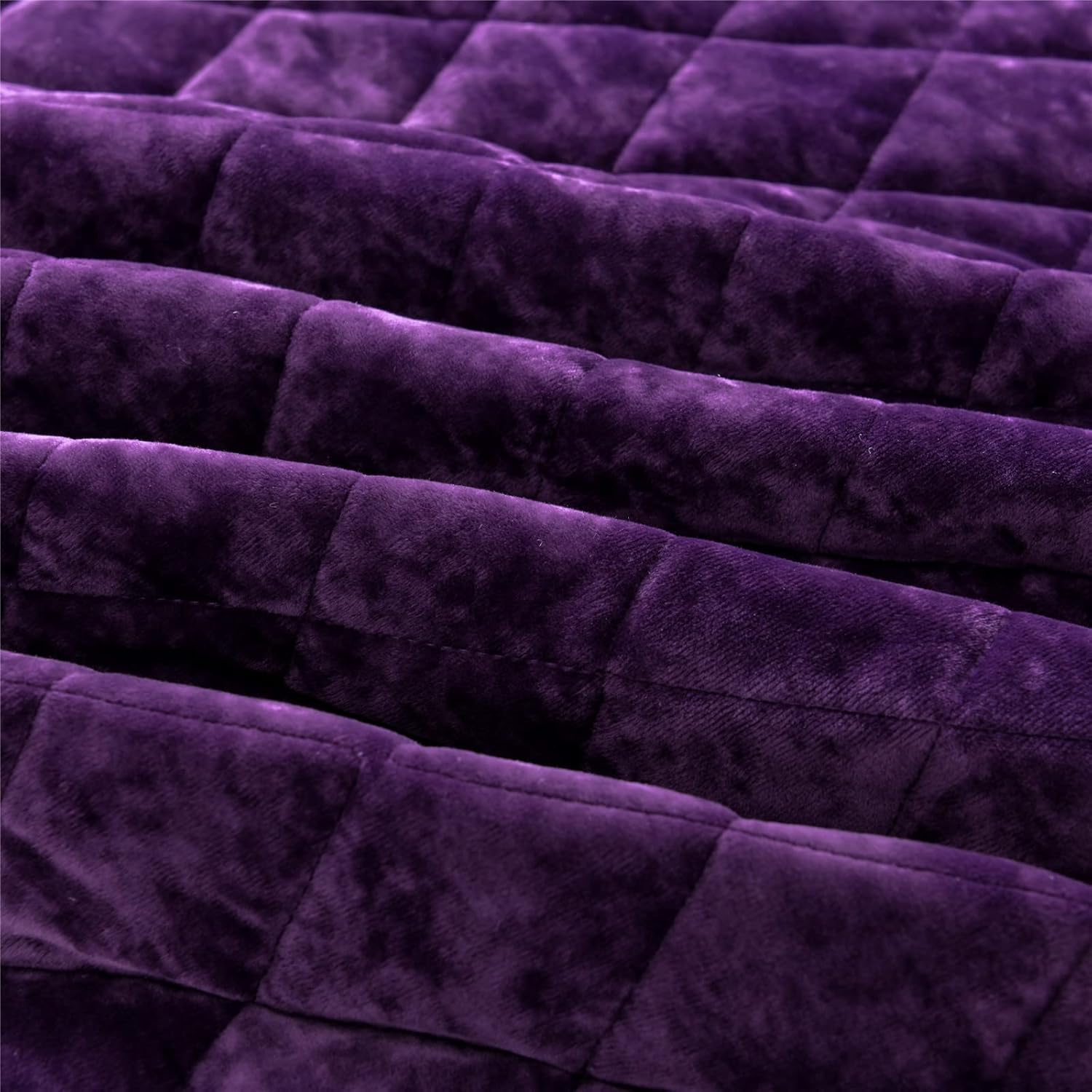 Made of distressed velvet for the quilt and sham face, brushed solid microfiber for the reverse, with light weight down alternative poly fill, diamond quilting pattern, 3 pieces.