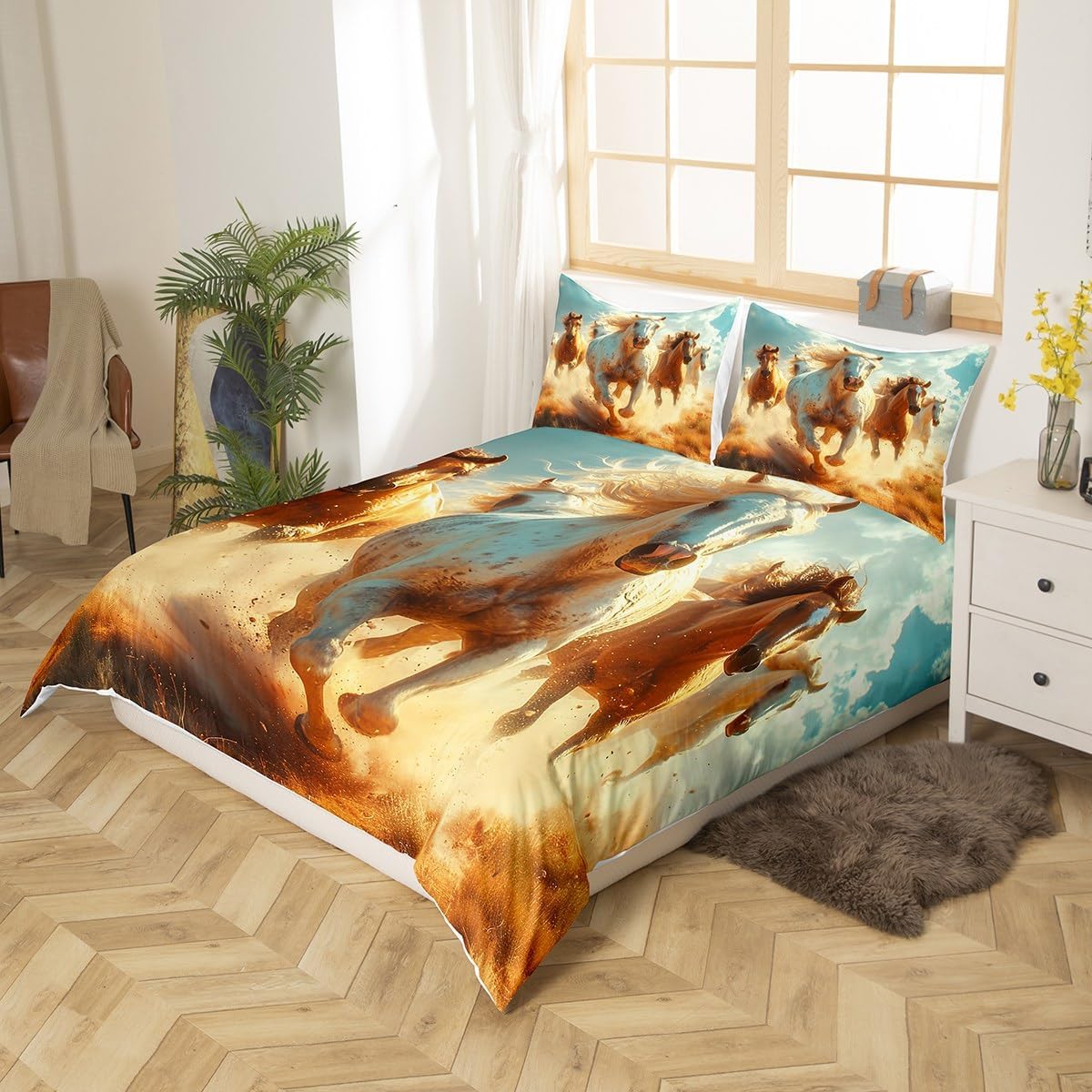 Package Include: Duvet Cover, Pillowcase; High Quality Duvet Cover Set Pattern Bedding Set, simply decorating your rooms any time you want, bringing you fresh feel for year round use. Polyester: Made from polyester microfiber, the sheet set offers strength, natural resistance to shrinking and a noticeably soft hand feel. Size Information: Twin size 2pcs: 1 x Duvet Cover 68" x 90", 1 x pillowcase 20" x 30".Without Comforter. Full size 3pcs: 1 x Duvet Cover 80" x 90", 2 x pillowcase 20" x 30".Without Comforter. Queen size 3pcs: 1 x Duvet Cover 90" x 90",2 x pillowcase 20" x 30".Without Comforter. King size 3pcs: 1 x Duvet Cover 104" x 90", 2 x pillowcase 20" x 36".Without Comforter. Personalize your bedroom: Beautiful design and colorful print, makes your bedroom unique and brings you a wonderful dream. Washing instructions: Machine wash separately in cold water,hang dry, do not bleach. Occasion: The cute soft duvet cover bedding sets designed for Children ,Adult, Men, Women, Teens. This duvet cover set is also suitable for full seasons, Spring, Summer, Autumn and Winter.