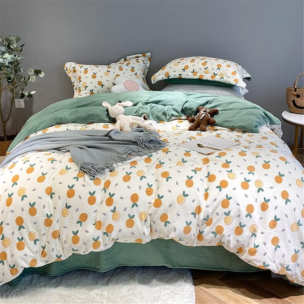 Autumn and Winter Cute Bear Velvet Four-Piece Warmth Cartoon Quilt Cover Thick Soft Bedding (Color : D Size: 1.5 m) (B 1.5 m)