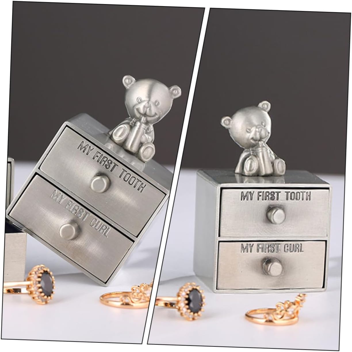 Package List 2 × Tooth Boxes Characteristics -Color:Assorted Tooth Leepsake Boxes -Size:7.70X5.00X4.20cm/3.03X1.97X1.65in Tooth Holder -Material:Metal Tooth Boxes - A practical and lovely metal box for storing curl and first teeth, use it to beautiful memories Tooth Container. - Excellent craft, carefully down to every detail to give it a beautiful look. Decorative and useful Tooth Storage Holder. - This tooth box can give your more wonderful childhood memories, simple to use Tooth Storage Container. - The tooth box adopted of sturdy metal material, practical and durable for long time use First Tooth Keepsake Boxes. - A great present for your , when they grow up, this box will show them these unforgettable moments Tooth Organizer.Goods DescriptionTooth Boxes Featuring lovely shape, delicate design, look so chic, a memorial box to keep your teeth.Tooth Storage Container Empty tooth box, it can be opened and closed to store something that can show the growth of your .First Tooth Keepsake Boxes A great present choice for shower or birthday, show them your love and concern