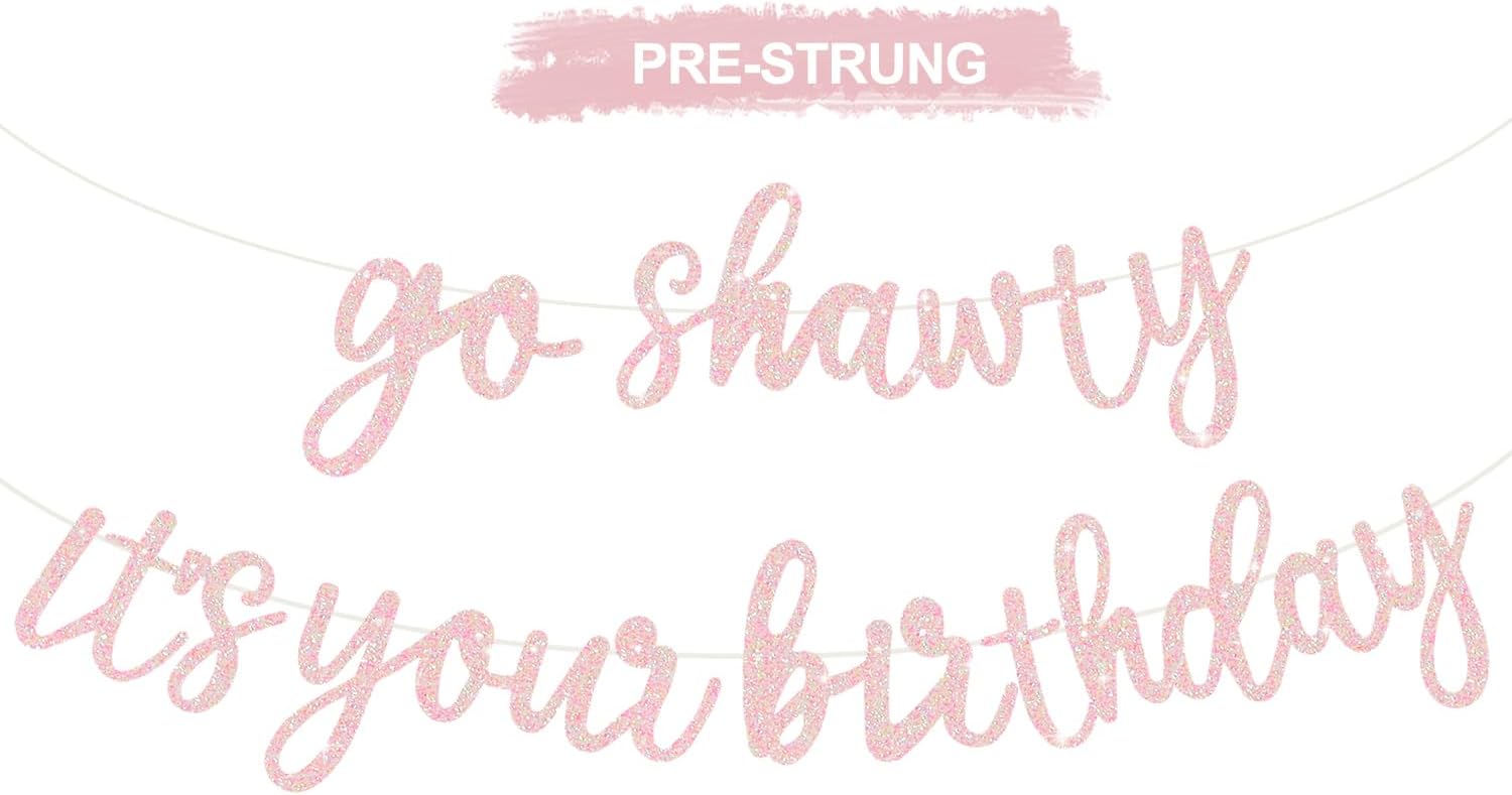 BEISHIDA Black Go Shawty It's Your Birthday Banner-11.4Feet, NO DIY-Hip Hop Theme Glitter Happy Birthday Banner - Pre-Strung - Black Rap Theme Happy Birthday Sign for Man Women birthday Party Supply