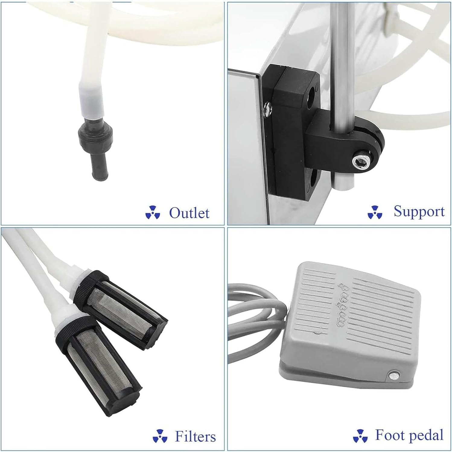 Features >>>LCD liquid crystal display: touch panel material, simple and convenient >>>Double discharge port: The double discharge port is more efficient, the discharge nozzle is designed to prevent dripping, the filling precision is high, and the measurement is accurate. >>>Stainless Steel Appearance: Stainless steel exterior design, beautiful and easy to clean >>>External pedal: external pedal, easy to operate and improve efficiencySpecifications: Voltage power: 220V 50/60HZ 120W Maximum runoff: 3000ml/M Filling range: 5ml-1000ml Filling accuracy: +2% Operation mode: manual and automatic Cooling method: air cooling Applicable bottle height: adjustable (mm) Dimensions: 420*240*170mm Applicable objects: yogurt, fruit juice drinks, skin care productsPackage contents 1 x Double head semi-automatic juice liquid filling machineNotice: 1.Due to differences between different monitors, the pictures may not reflect the actual color of the item. 2.Please compare with your detailed size, please allow 1-3cm error due to manual measurement. Thank you for your understanding