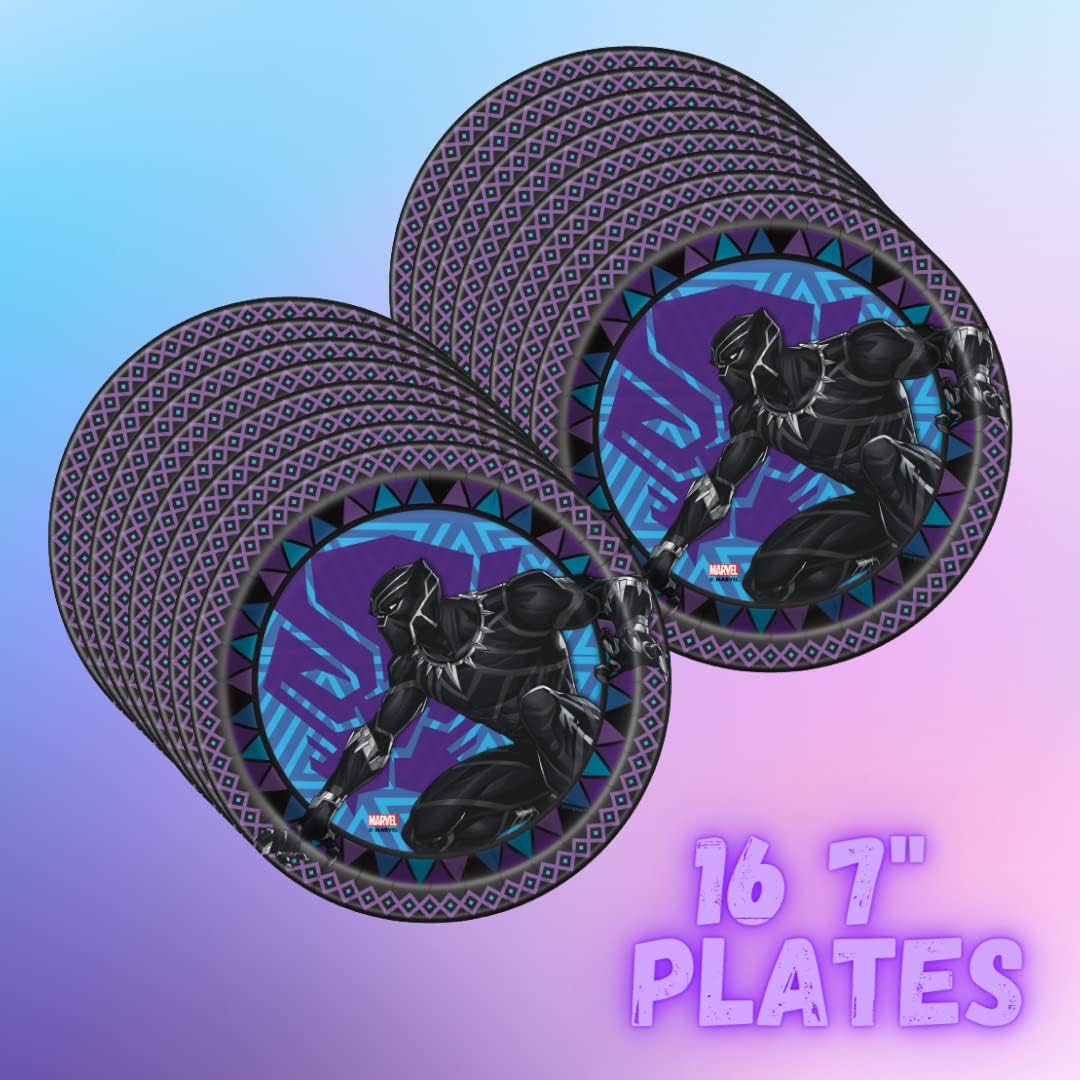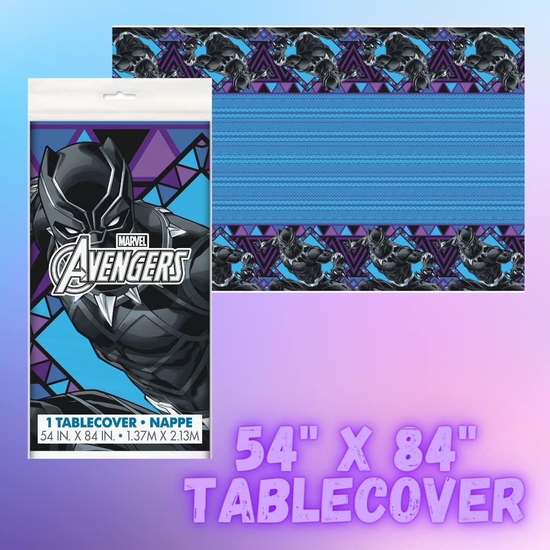 Black Panther is loved by boys and girls plus adults. Start the Black Panther Party Decorations with the Black Panther Tablecover on the dinner table, cake table, or gift table. Sprinkle the matching confetti on the Superhero Tablecloth to add some sparkle to the party. Hang the Superhero Birthday Decorations like the Happy Birthday Banner to add to the festive atmosphere. Use the Black Panther Bday Party Supplies including Black Panther plate, cup, and napkin to serve each guest pizza, hot dogs, cake, cupcakes, and Black Panther Drink, punch or whatever party foods you are serving. Everything is disposable making clean up a breeze when the party ends. You can add coordinating Black Panther Party Favors for Kids like Black Panther Party Bags, with Panther Party Favors or a Black Panther Backdrop and Black Panther Party Masks for some fun photos! Have an amazing party with your Superhero Birthday Party Decorations!