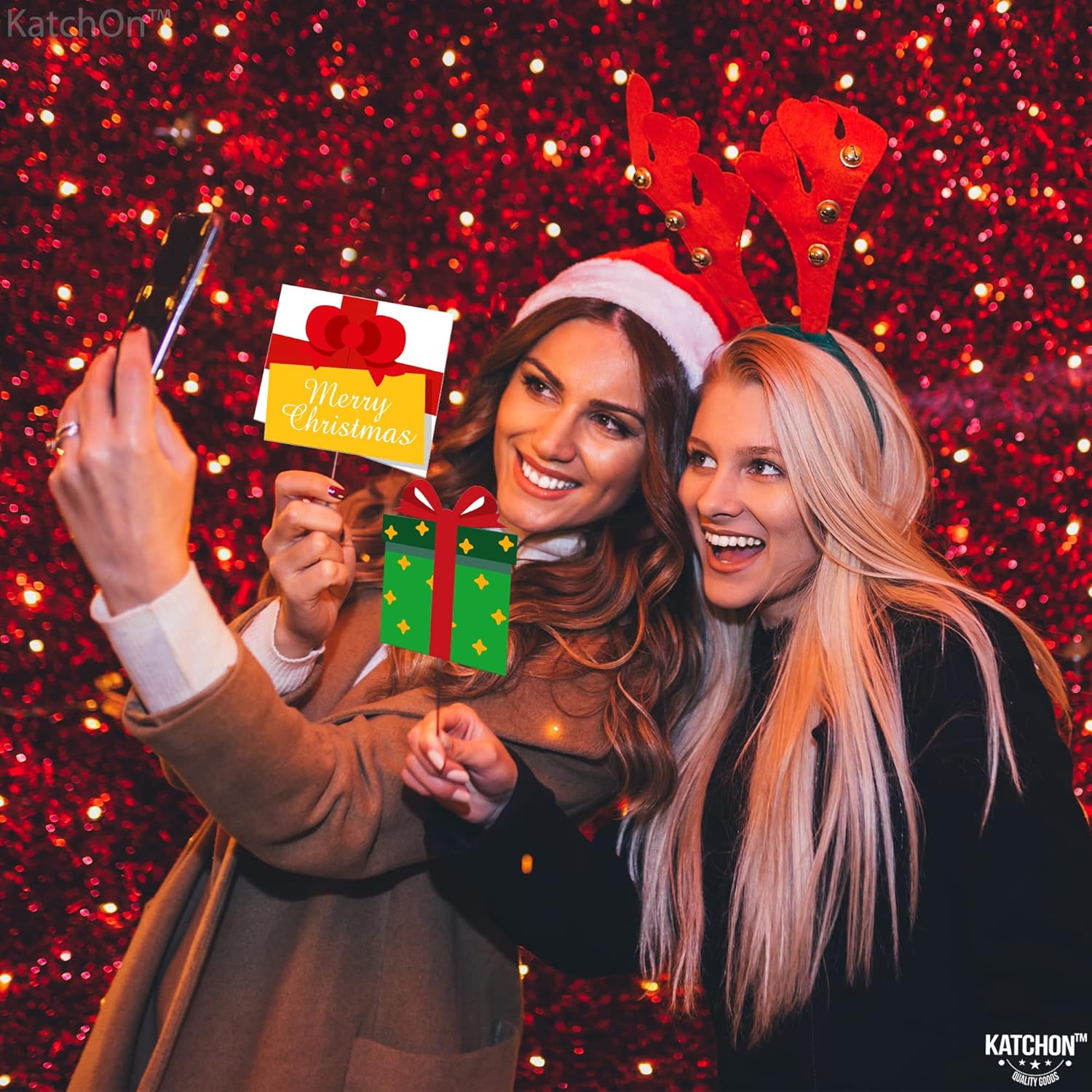 What you will get: 1) Glitter Christmas party glasses : Pack of 24 2) Material: Cloth and plastic 3) Christmas Photo Booth Props Kit - Pack of 27, Cardstock 4) 29 Wooden sticks 5) 30 Glue Dots