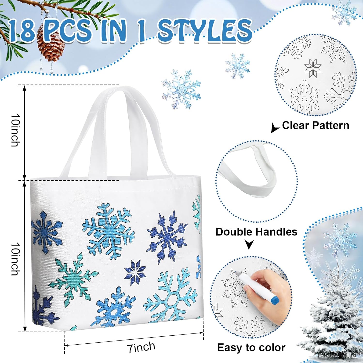Features: Interactive craft activities: Let children play for hours with these Halloween trick or treat crafts, develop creativity and fine motor skills as they design and paint their own tote bags, making them memorable souvenirs of the holiday. Wide range of uses: Except Halloween, these Halloween coloring party favor tote bags are also good for arts and crafts classes, birthday parties or as everyday tote bags, providing a unique DIY experience and adding a personal touch to their celebrations. Specifications: Material: canvas Color: white Size: 10.04 x 7.09 inches/ 25.5 x 18 cm Package includes: 24 x Halloween coloring goodie bags Notes: Manual measurement, please allow slight errors on size. The color may exist a slight difference due to different screen displays
