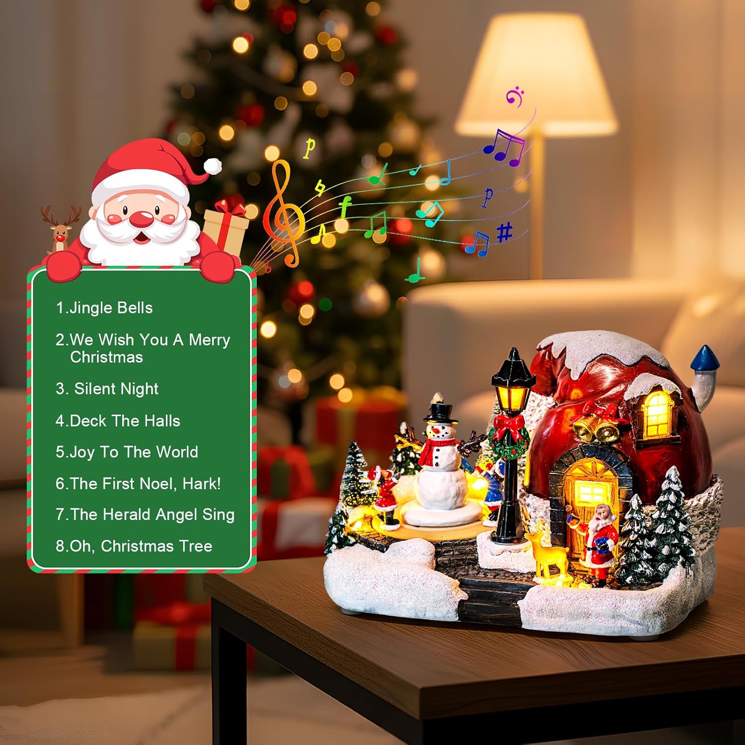 | Included Components | LED-lit spinning train, battery power source, USB power source, musical component |