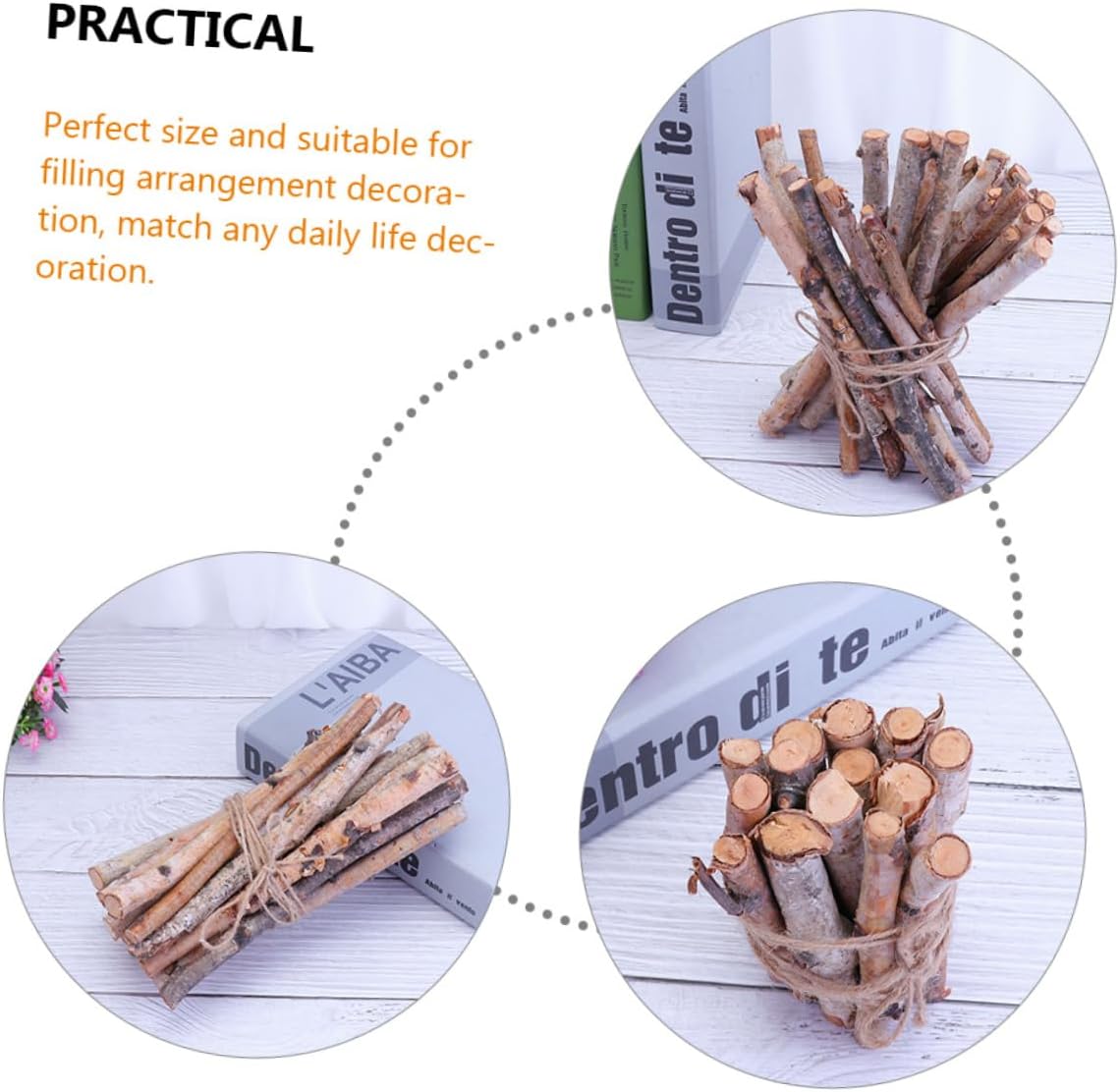Package List 20 x Decorative Birch Logs 10cm 20 x Decorative Birch Logs 20cm Characteristics -Size:20.00X1.00X1.00cm/7.86X0.39X0.39in birch tree branches -Color:Brown birch logs for decorative -Size:10.00X1.00X1.00cm/3.93X0.39X0.39in birch poles -Material:Wood sticks for vases for decor - These decorative birch sticks are great decorative addition to a or fill in a wood basket birch wood logs for decorating. - Beautiful, for room decor, elegant vase filler setting, or home, office and shop decoration wood branches. - Bright color, simple and generous, can make your room looks more beautiful and natural birch wood. - No need to water and put outside to receive sunshine, just put them for decoration birch twigs. - size and suitable for filling arrangement decoration, match any daily life decoration logs.Goods Informationsticks for vases for decor They are also wonderful and creative flower arrangement accessories, which will add much natural atmosphere.vase decorations They are fantastic to decorate with paint, ribbon, decoupage, etc.decorative logs Decorative dried twigs are for photo props, decoration, embellishments, DIY craft, and so on