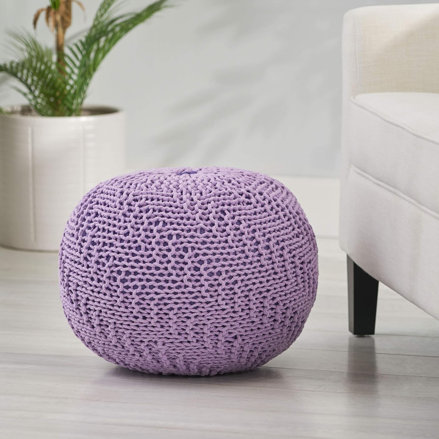 Enjoy this cotton knitted round pouf in any room of your home. Perfect for putting your feet up or using it as a small extra seat when company is over. Easy to store in a corner or by the bed when not in use, This Pouf not only looks cute but is functional too.