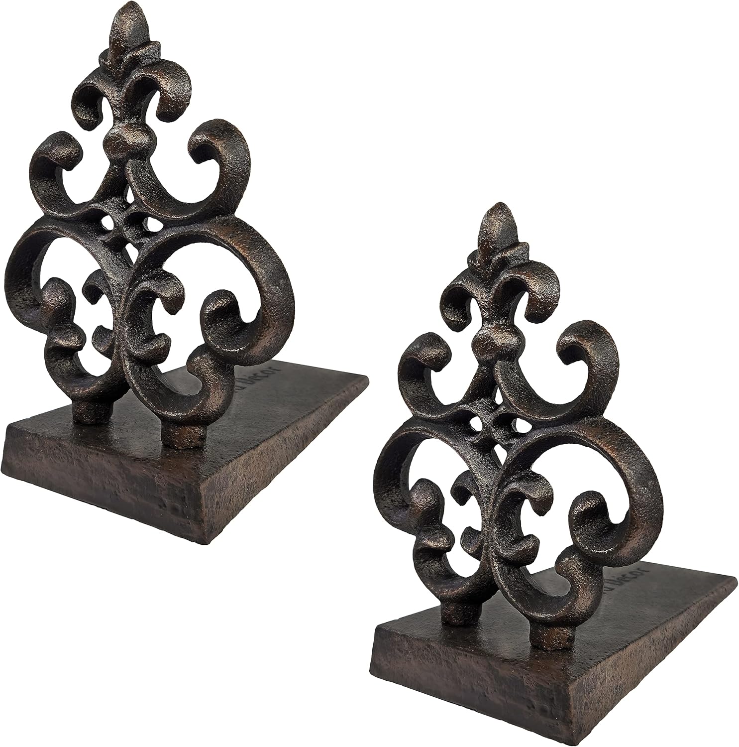 This antique black finished cast iron fleur de lis door stop is the perfect accessory for those who appreciate the iconic fleur de lis design. Its heavy-duty construction makes it a reliable door stopper for any setting, whether it be your office, home, or shop. The unique design makes it a great housewarming or holiday gift for any fleur de lis lover.