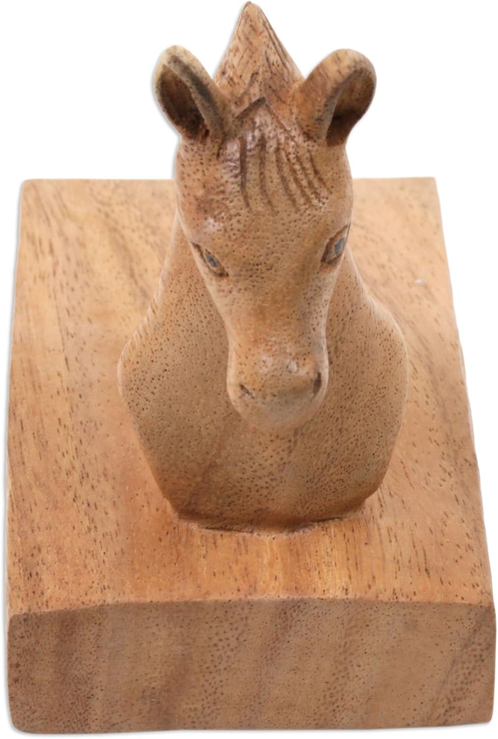 NOVICA, in association with National Geographic, works together with talented artisan designers around the world to produce stunning, keepsake treasures. Our mantra is to spread global happiness, so rest assured - we’ll do everything we possibly can to ensure you’re a happy customer. About this item: The bust of a noble horse adorns this handy door stopper from Bali, carved of local suar wood with a natural brown finish. Nengah Sudarsana works with local artisans to design this door stopper, which makes a charming addition to any household. - Hand-crafted item -- color, size and/or motif may vary slightly - Wood grain and color can vary slightly About our Artist: 'From an early age I loved natural things: plants, animals, birds or sea life. When I was still quite young I knew I had an ability to translate nature into artful things of beauty. Although I have no formal art training and work purely from my own inspiration and intuition, I know what looks good and what doesn't look right in a carving. I particularly want to create wildlife and other animal themes in an exact, realistic and original way. '