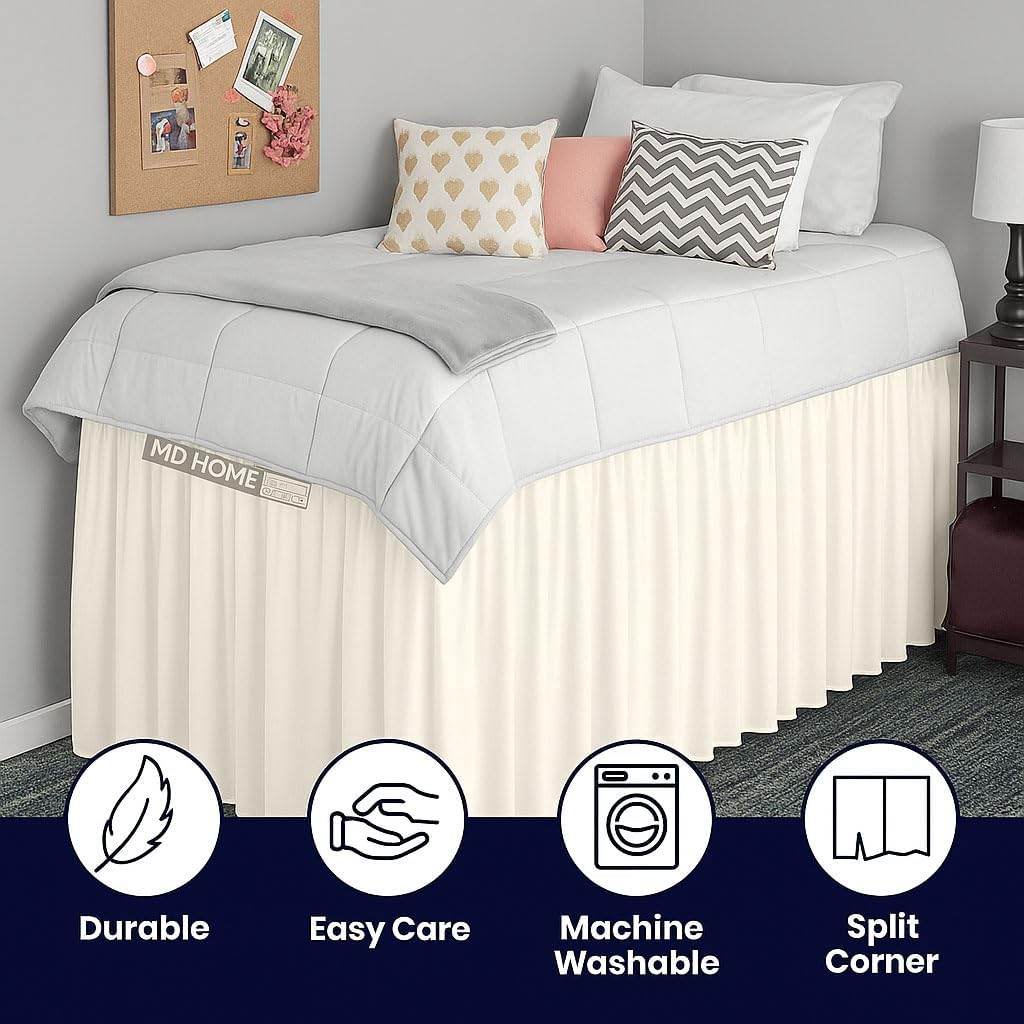 Struggling to pull together a cohesive dorm room look? Our Ruffled Dorm Sized Bed Skirt in Twin XL is here to help! Designed specifically for college dorm beds, this stylish ruffled bed skirt in a neutral taupe color easily complements any dorm décor. Whether you’re short on time or just can’t decide on a color scheme, neutral tones like taupe are the perfect go-to for a clean, coordinated look. Crafted from 100% microfiber, this Twin XL bed skirt offers a soft, durable finish that is also wrinkle-resistant and machine washable—perfect for busy college life. The extra-long 36-inch drop is tailored to fit over dorm bed risers and fully conceal your underbed storage, keeping your dorm room neat and organized. Whether you're going for a minimalist aesthetic or mixing textures and tones, this ruffled bed skirt adds a touch of elegance while serving a practical purpose. It’s an easy and affordable way to upgrade your dorm bedding essentials while maximizing storage space.