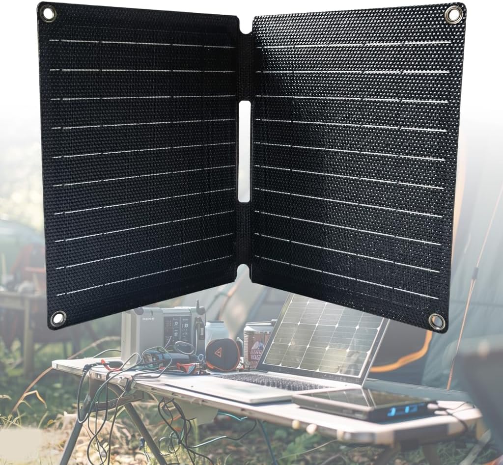 Features: 10W DC5V ETFE solar panel charger, portable and foldable design. Equipped with Type C and USB outputs. Can charge two phones simultaneously. Thin design, small size, lightweight, dustproof and scratch resistant, IPX6 waterproof. Suitable for mobile phones, tablets, headphones, game consoles, USB fan, speakers and more. Specifications: Material: A-grade monocrystalline silicon Color: black Size: approx. 327x207mm/12.87x2.15inch Name: 10W ETFE Solar Folding Charger Output voltage: 5V Current: 2A (intelligent voltage regulation) Output interfaces: USB/Type C Conversion rate: 23% Process: ETFE laminated integrated (2nd generation laminated integrated technology) Waterproof rating: IPX6 Note: Please allow 1-2cm errors due to manual measurement. Please allow for slight color differences due to different display resolution. Package includes: 1 Piece Solar Charger 2Pcs Mountaineering Buckles