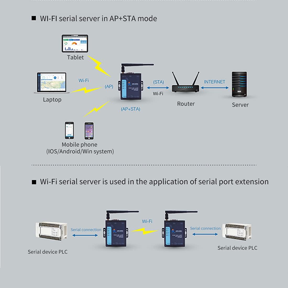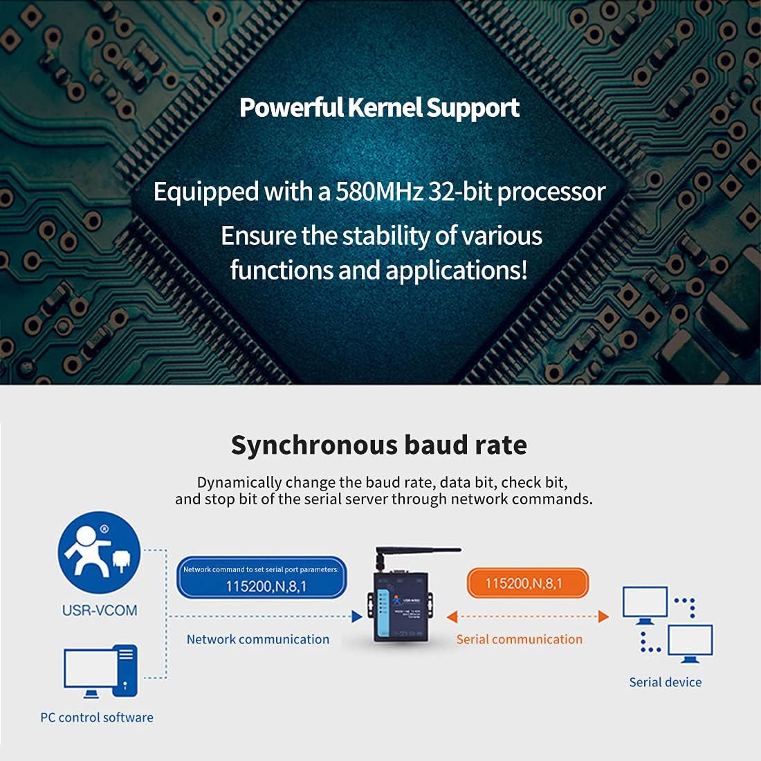Features 1. Two Ethernet Ports, Wan /Lan Port 3. Supports Modbus Rtu to Tcp, Modbus Polling 4. Hardware Watchdog to Kee Working Stable 5. Dc Adapter and Terminal Power Supply 5-36 V 6. Serial to Wifi or Wifi to Ethernet 2 Ethernet Ports Serial to Wifi and Ethernet Converter Usr-W630, Which Can Realize Bidirectional Transparent Transmission Between Rs232/Rs485 and Wifi, Wifi And Ethernet, Serial and Ethernet. Characters Two Ethernet ports: 1x WAN, 1x LAN/WAN. Two Ethernet ports (WAN and LAN) can be worked simultaneously Modbus gateway: Modbus TCP to Modbus RTU in bi-directional; Modbus Polling Electrostatic protection Hardware WatchDog, 24 hours stable operation. Timeout reset function, timing reset function. Supports identity packet function. Supports heartbeat packet function. Websocket function Supports Web Server, setup software, serial/network AT command to configure module. Hardware reload. WIFI Standard: 2.4GHz 802.11b/g/n Work Mode:TCP Server/TCP Client/UDP Server/UDP Client/HTTP Client mode. Supports AP, STA, AP+STA. Supports usrlink. EFT: Passed EFT test, when there is instantaneous high current in the circuit (such as lightning, power switch, etc.), it can ensure that the device hardware is not damaged. Power: 2KV, Ethernet interface 232 485: 2KV