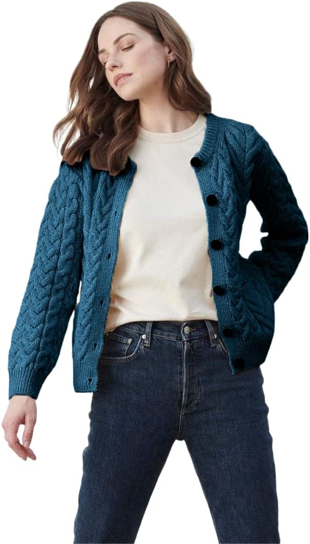 A classic crewneck cardigan will always be a wardrobe staple. This chunky knit style is both timeless and modern with a thick woven Merino wool. Ribbed trim at the cuffs, hem and collar add to the traditional elements, while the wooden buttons and front patch pockets infuse it with some trendy elements. Wear it with a collared shirt for a sophisticated look or open and relaxed with a tee for your new weekend uniform.