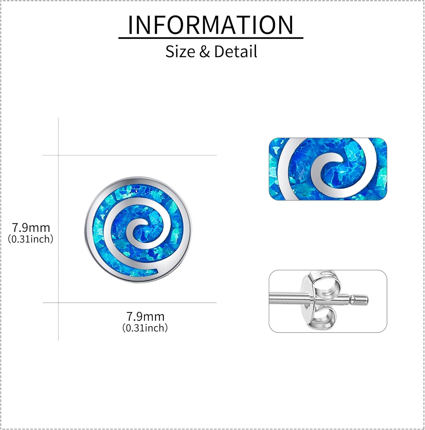 Spiral Opal Earrings 925 Sterling Silver Spiral Swirl Opal Stud Earrings Spiral Jewelry Gift for Women