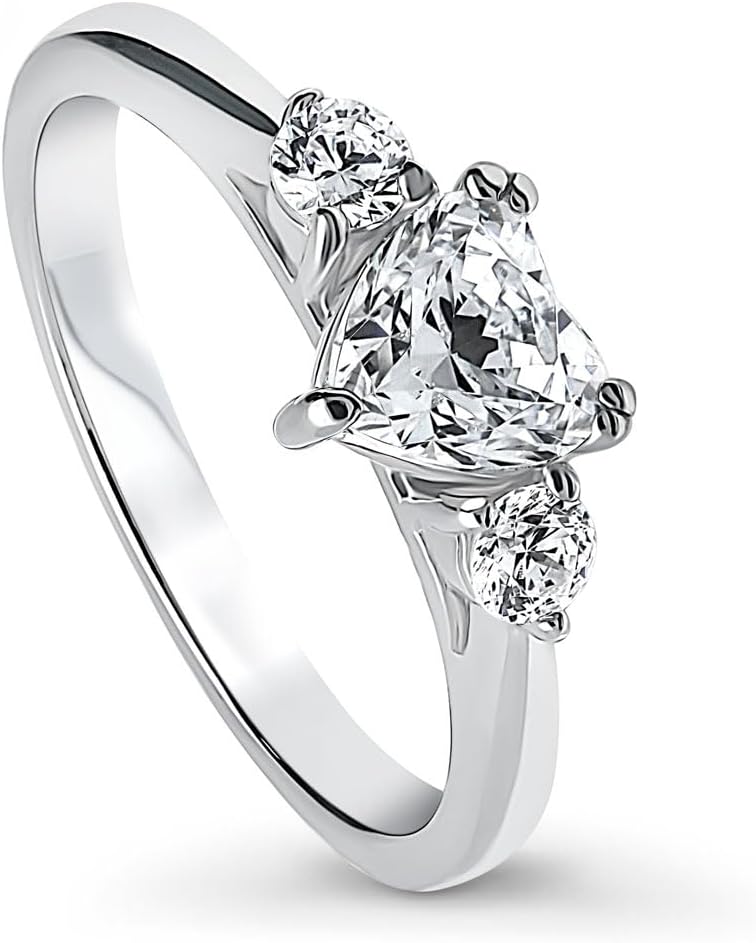 Enchanting sterling silver heart rings with cubic zirconia sparkle. Ideal for engagement, promise, or wedding occasions, these solitaire and three-stone designs with stackable bands highlight elegance and romance, perfect for anniversaries. Crafted with fine 925 sterling silver. Set with premium grade cubic zirconia CZ. Imported.DISCLAIMER: CZ carat weights are approximate and provided as diamond equivalents. Intended for adult women.