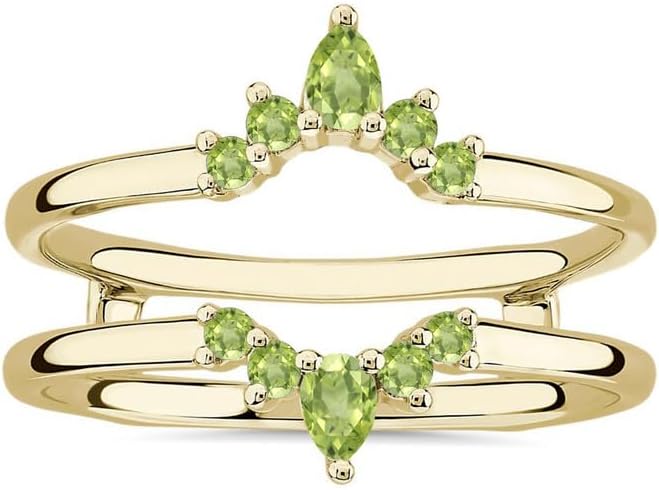 This Band Crafted in 925 Sterling Silver, available in 14K White, Yellow and Rose Gold Plating. Round & Pear Cut simulated Peridot set in prong setting.