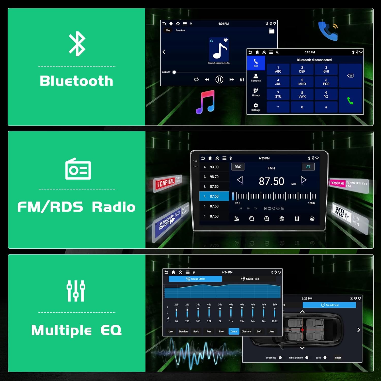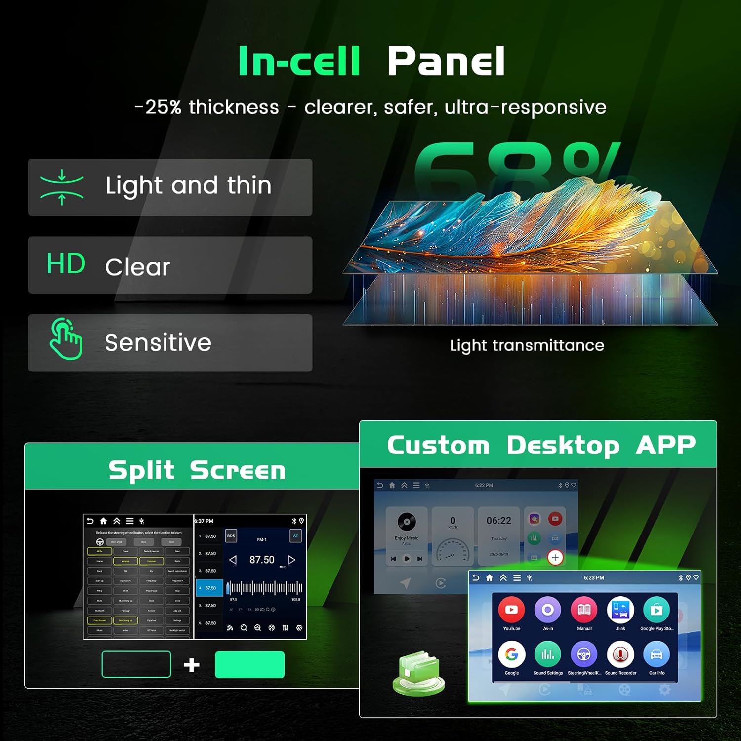 | Additional Features | 4+128GB, BT/EQ/FM/RDS, Build-in WiFi & GPS, In-cell Touch Screen, Wireless CarPlay & Android Auto |