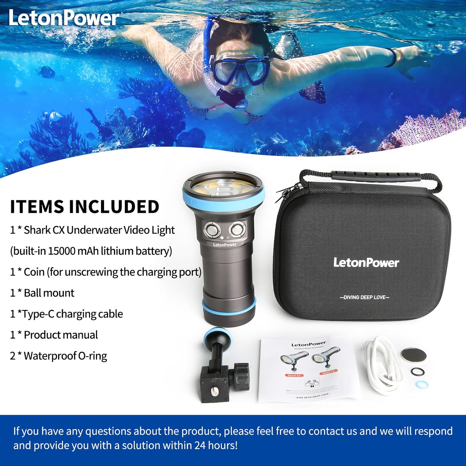 | BuiltIn Media | 1 * Ball support, 1 * Hard shell rainproof storage bag, 1 * Shark CX Underwater Video Light, 1 * Type-C charging cable/1 * Coin (to unscrew the charging port), 2 * O type rubber ring |