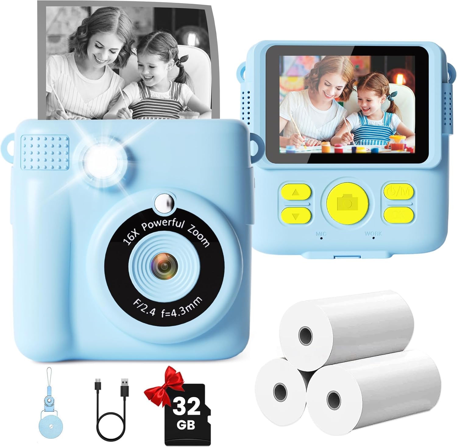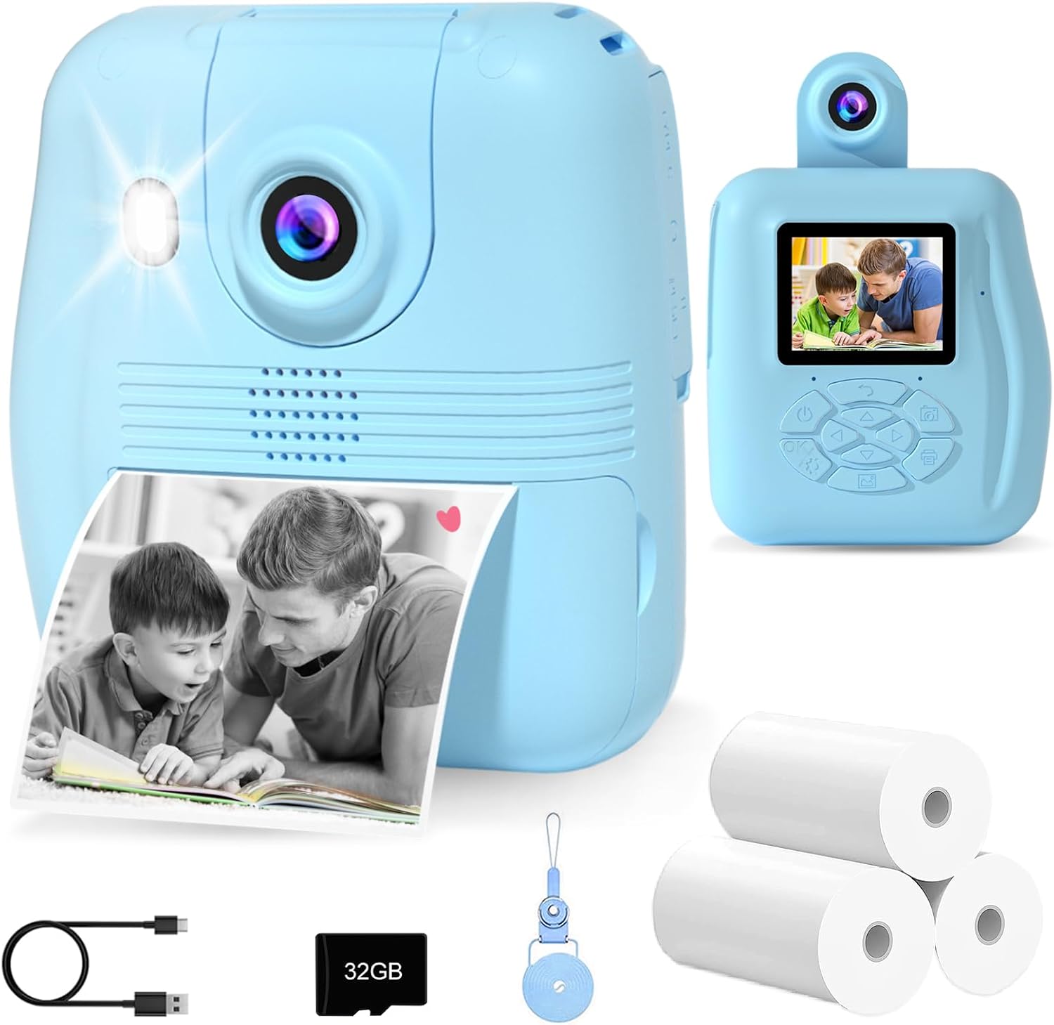 | BuiltIn Media | 1 x 32GB SD Card, Type-C USB Cable, 1 x Lanyard, 1 x Sticker, 1 x Printing Camera, 1 x User Manual, 3 x Rolls Photo Paper |