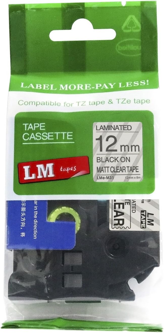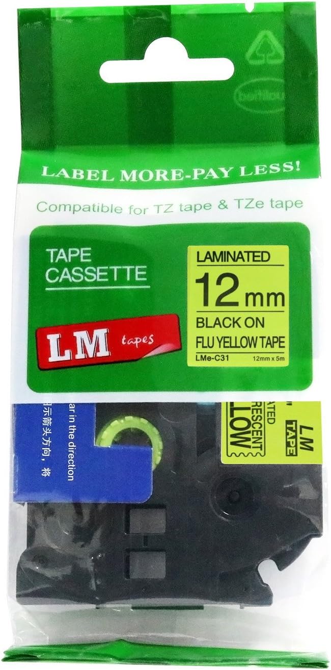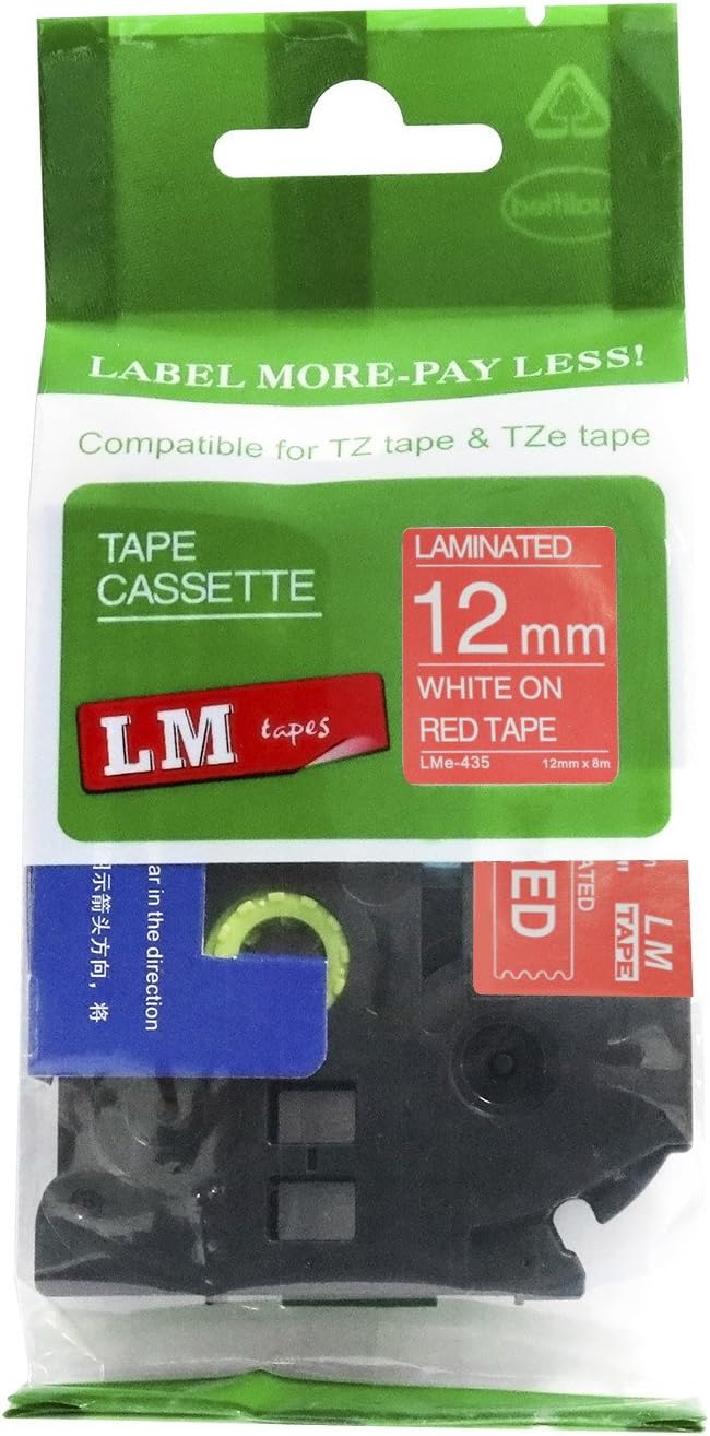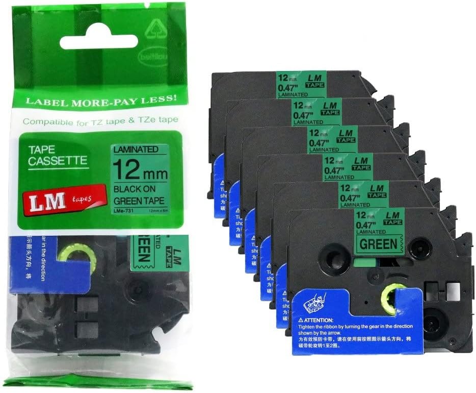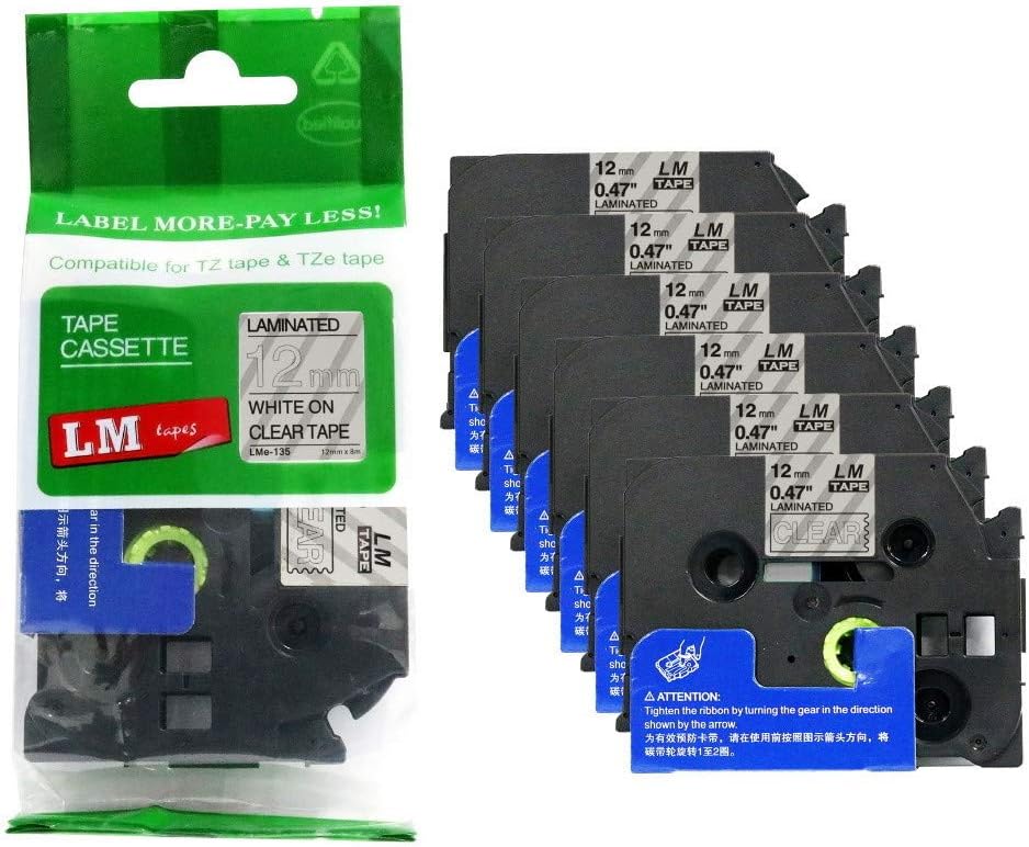 6/Pack LM Tapes LMe-234 Laminated 12mm Gold Print on White LabelThis Premium Compatible TZe-234 1/2" Gold on White tape is compatible with Brother P-touch label makers that use TZe series tapes but is not manufactured by or sold by Brother. This replacement laminated label tape is 1/2" (12mm 0.47) x 26.2' in length and can be used for both indoor and outdoor applications.These labels are rugged and will holdup in freezing temperatures as well has hot/sunny environments. They have regular strength adhesive and are best suited for smooth flat surfaces.For use in P-touch Models: PT18R, PT200, PT300, PT310, PT320, PT330, PT340, PT350, PT520, PT530, PT540, PT550, PT580c, PT1000, PT1010, PT1090, PT1090BK, PT1100, PT1100sb, PT1120, PT1130, PT1160, PT1170s, PT1180, PT1190, PT1200, PT1230PC, PT1280, PT128AF, PT1290, PT1300, PT1400, PT1500pc, PT1600, PT1650, PT1700, PT1750, PT1760, PT1800, PT1810, PT1830, PT1880, PT1900, PT1910, PT1950, PT1960, PT2030, PT2030AD, PT2030VP, PT2100, PT2110, PT2200, PT2210, PT2300, PT2310, PT2400, PT2410, PT2430PC, PT2500pc, PT2600, PT2610, PT2700, PT2710, PT2730, PT2730VP, PT3600, PT6100, PT7100, PT7500, PT7600, PT9200dx, PT9200pc, PT9400, PT9500pc, PT9600, PT9700PC, PT9800PCN, PTD200, PTD400, PTD400AD, PTD400VP, PTD450, PTD600, PTE100, PTE300, PTE500, PTE550W, PTH100, PTH101C, PTH105, PTH110, PTH300, PTH300LI, PTH500LI, PTP700, PTP750W, PTP900W, PTP950W, ST5, ST1150, ST1150dx