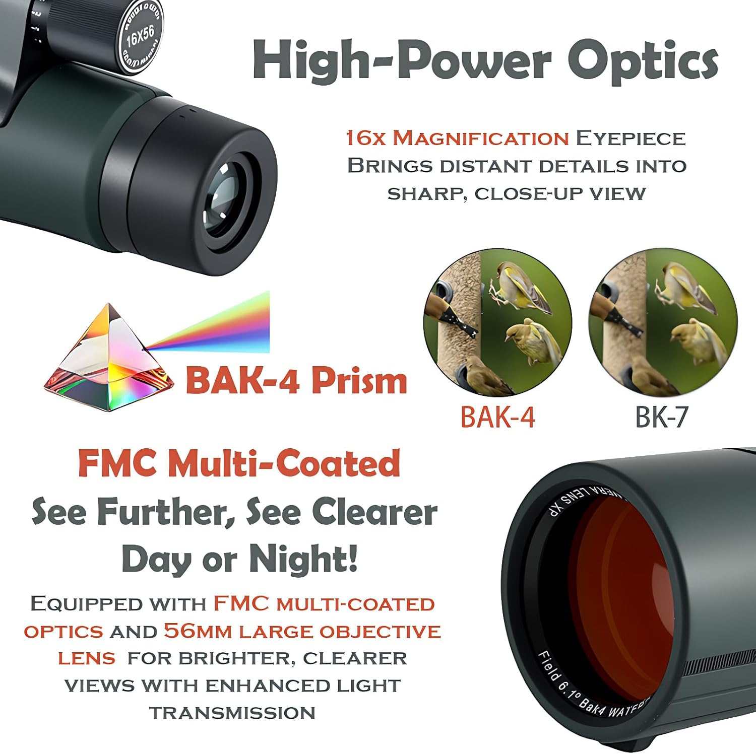 | BuiltIn Media | 1. Hand Strap, 2. Cleaning Cloth, 3. Instruction Manual, 4. 16×56 Monocular, 5.Smartphone Adapter |