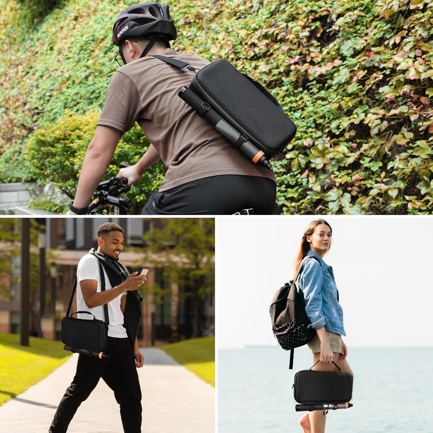 • ALL-IN-ONE ADVENTURE READY - Holds Osmo 360’s core ecosystem (batteries, tripod handle, bike mounts) + expands via hook-and-loop straps for 2.5M(8.2ft) selfie sticks. Built for cyclists, travelers, and creators who demand tough, smart storage.