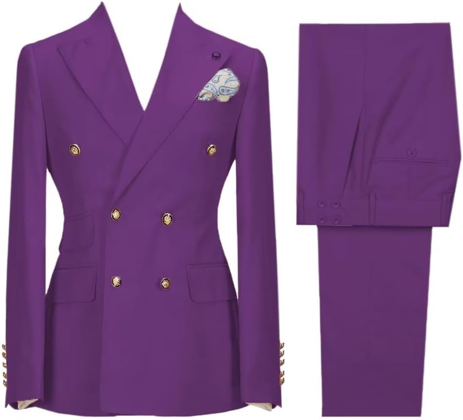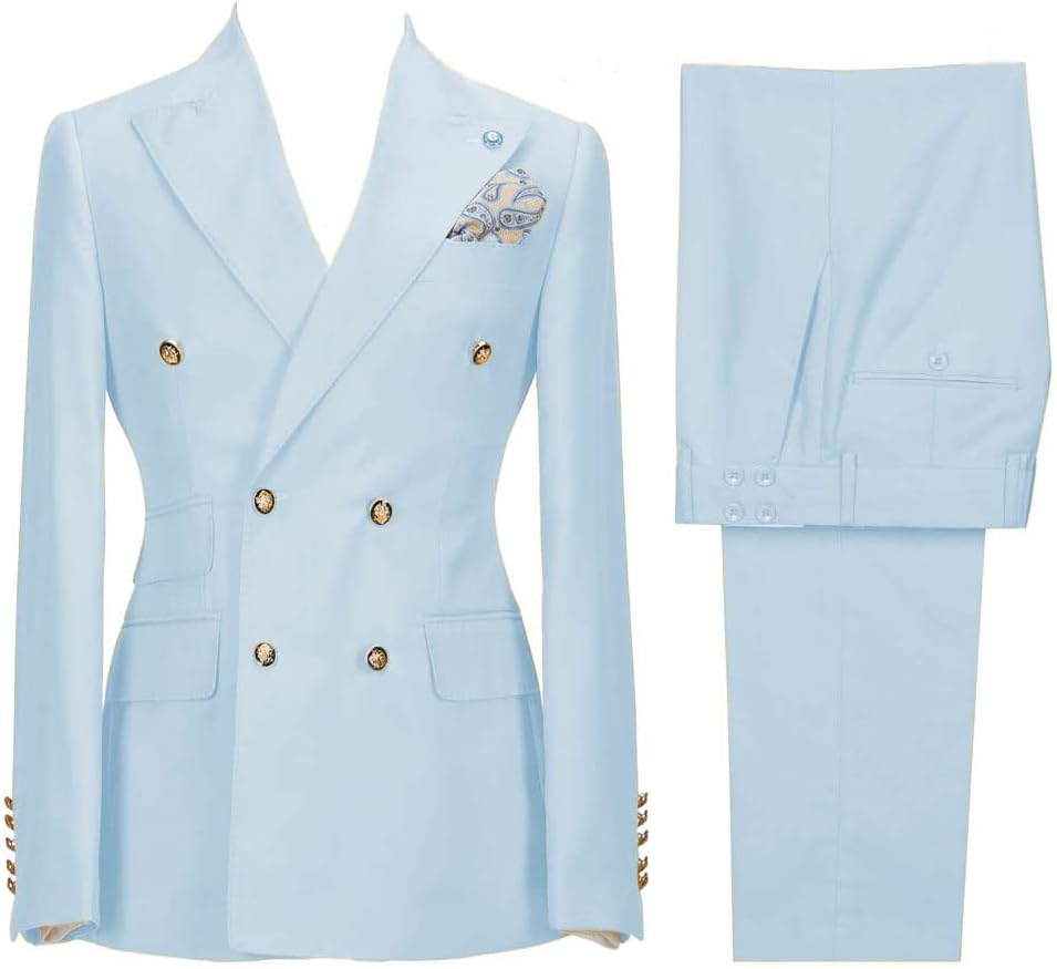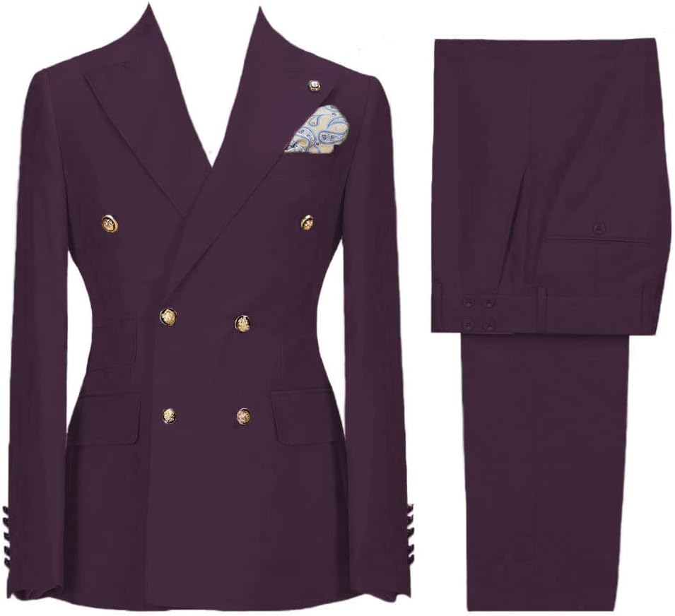 About us HZUOU Specializing in providing Men's Clothing, including men's business suits, tuxedos, men's casual suits, formal suits, groom tuxedos and other clothes and clothing accesories, We are committed to offer our most innovative and comfortable products. If you have any quetsions, please feel free to tell us,we will try our best serve to you and solve the problems. About Product Material:Polyester+Cotton Jacket Lapel Style:Peak Lapel Back Vent:Double Vent BLAZER FEATURES:Slim fit, Six button, Double-breated, Peak Lapel,Solid PANTS FEATURES:Flat Front,back pockets PACKAGE INCLUDING:1*Jacket + 1*Pants Size Tips Please choose the size from our size chart, if you do not which size, just contact us Color Difference Please be aware that colors might look slightly different in person due to camera quality and monitor settings