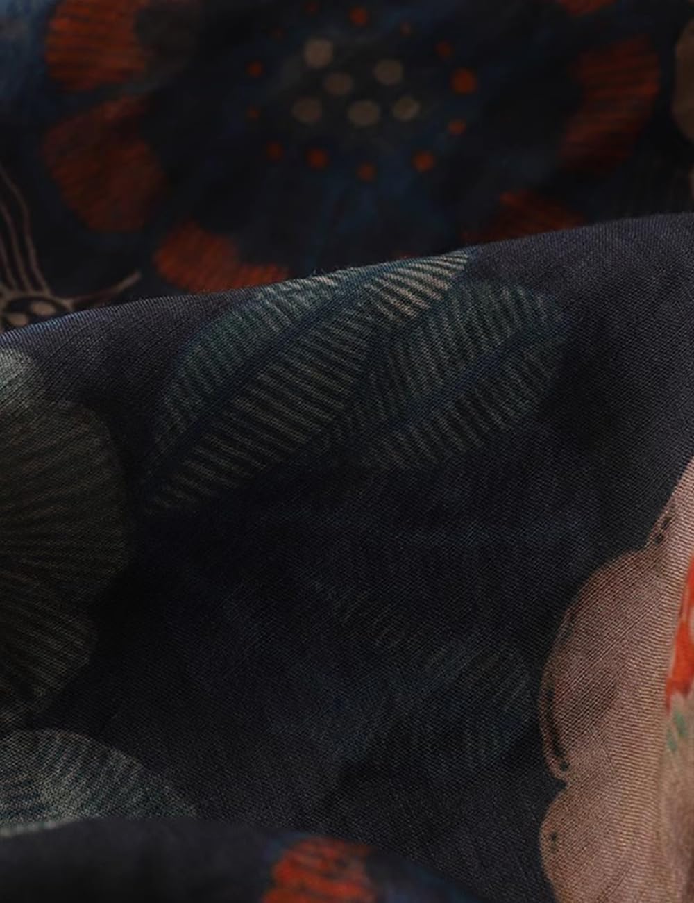 Step into vintage-inspired elegance with this charming sleeveless slip dress. The stunning floral print features delicate blooms in muted tones of peach, sage green, and rust against a sophisticated navy background, creating an artistic and feminine aesthetic. The dress showcases a flattering A-line silhouette with thin spaghetti straps and a graceful scoop neckline. Crafted with a flowing design that offers both comfort and style, this versatile piece moves beautifully with every step. The dress length falls to a casual mid-calf level, perfect for both daytime outings and evening occasions. The subtle details in the print include intricate butterfly motifs and detailed flower centers that add depth to the overall design. This summer dress can be easily dressed up with heels and statement jewelry or kept casual with sandals and a straw bag. The timeless design makes it a perfect addition to any wardrobe, suitable for various occasions from garden parties to casual weekend brunches.