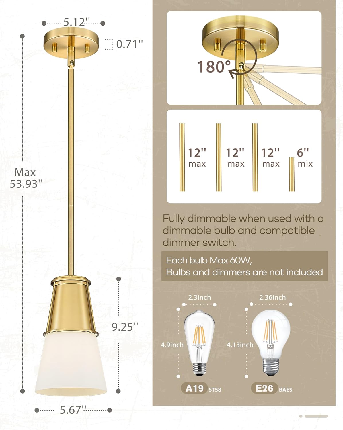 | Included Components | Instruction Manual, Mounting Hardware, Shade |