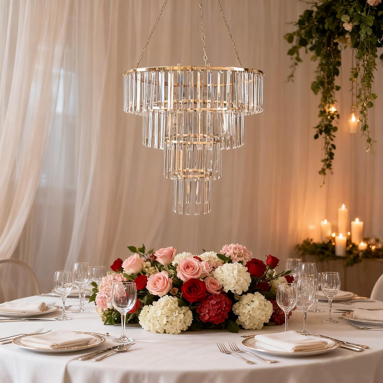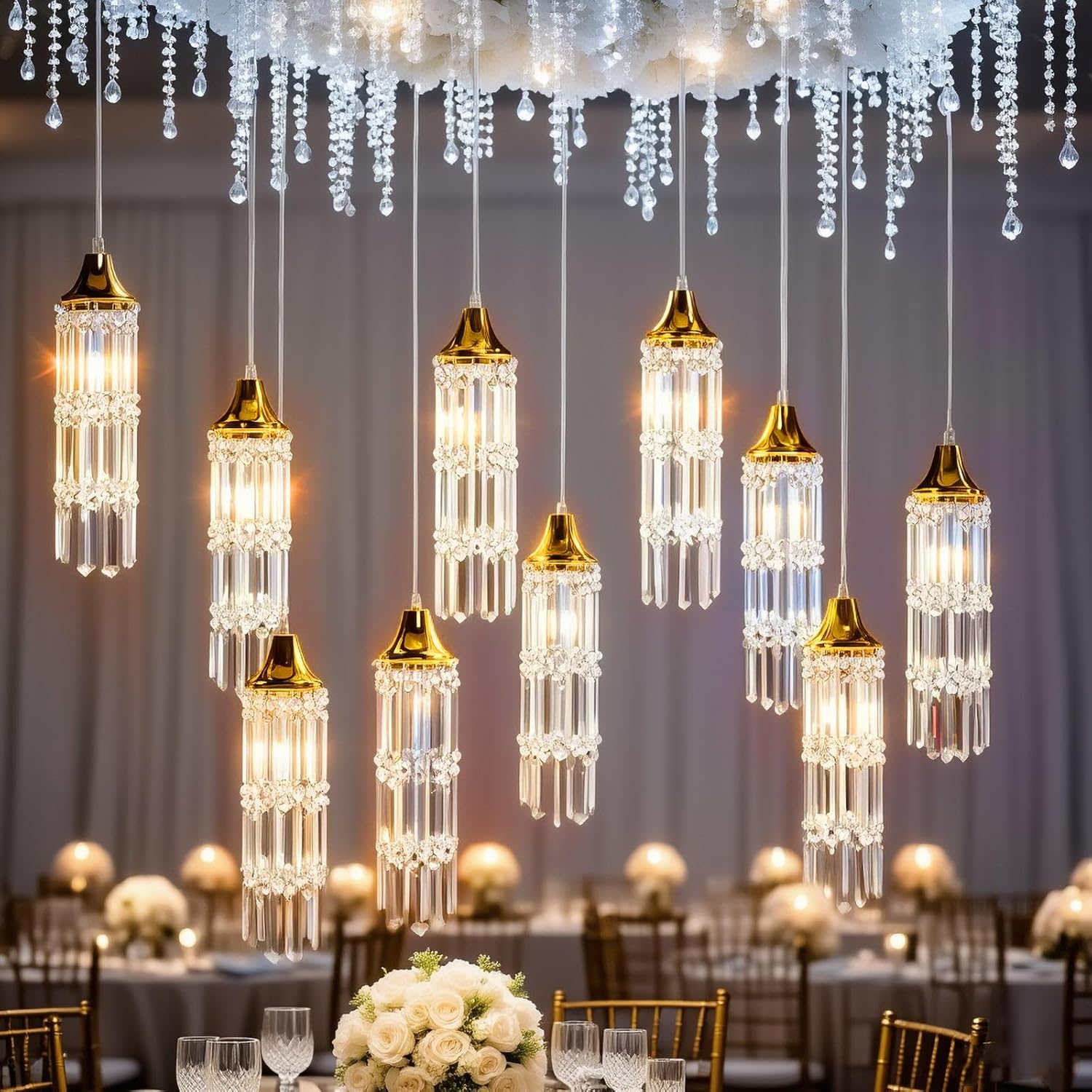 Gold Metal Flower Stand Vases with Crystal Beads Bring sophistication and shine to your event décor with this 4-Pack of Gold Metal Flower Stand Vases featuring hanging crystal beads. Crafted from sturdy metal with shimmering acrylic accents, each vase adds structure and sparkle to your tablescape. Perfect for weddings, galas, or upscale celebrations, these decorative column centerpieces add dimension and height while reflecting light beautifully. The gold finish brings warmth and elegance to any color palette, and the crystal details create a gentle sparkle that enhances your floral arrangements. Whether you’re styling them with roses, greenery, or candles, these vases bring a luxurious touch to every occasion. Practical yet visually stunning, these metal flower stand vases are designed for easy styling and durability. The open column design allows you to showcase floral arrangements from every angle, while the sturdy base ensures balance and stability throughout your event. Their versatile design works well with a variety of décor elements like charger plates, table runners, and textured linens. Use them in multiples for a cohesive look across guest tables or as focal points at the head table or ceremony entrance. These vases blend functionality and style, offering endless possibilities for creative event design.