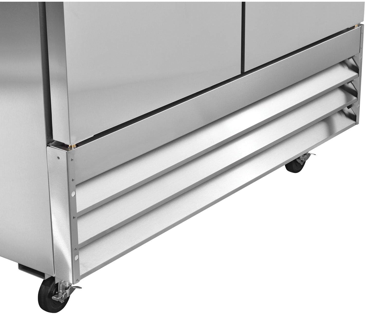 Commercial grade reach- in freezer is durable and spacious. Constructed of stainless steel exterior and interior for long life and easy cleaning. Unit includes 6 adjustable PVC coated steel shelves for versatile storage needs and bright incandescent interior lighting. Exterior digital temperature controls offer precise and constant temperatures ranging from -8 to 0 degreesF. R290 refrigerant offers low environmental impact and excellent thermodynamic performance. Bottom mounted 1/2 HP compressor allows for easy servicing. Unit rolls easily on 3" swivel polypropylene casters, 2 with brakes. 47 Cubic ft. capacity., Lot of 1